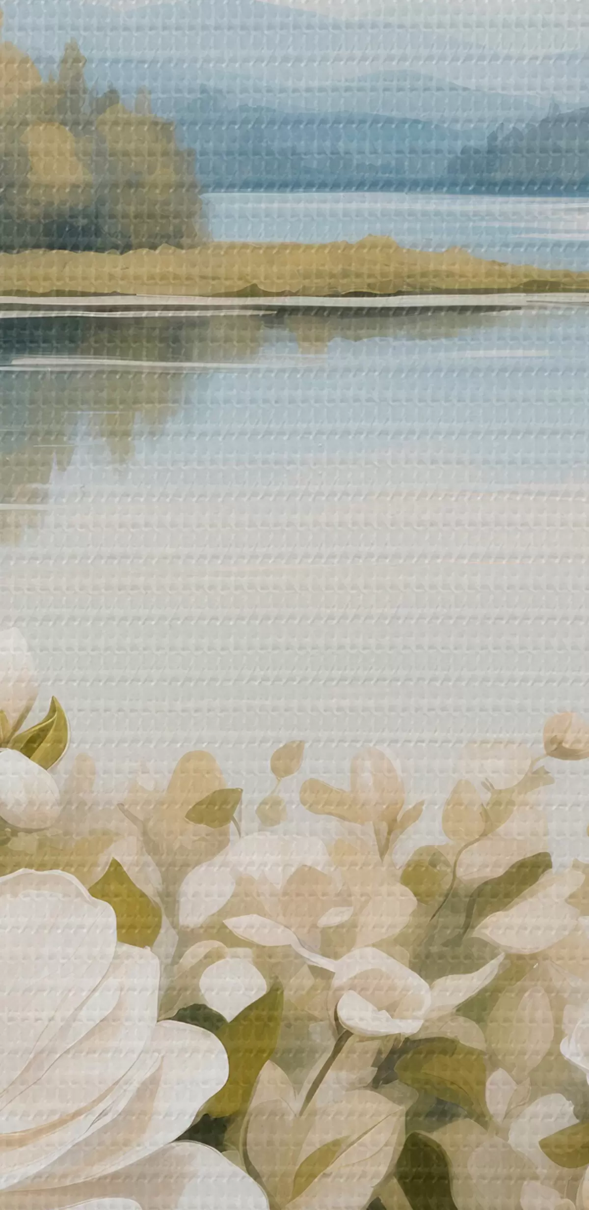 Glezna Balti ziedi uz upes fona s40869