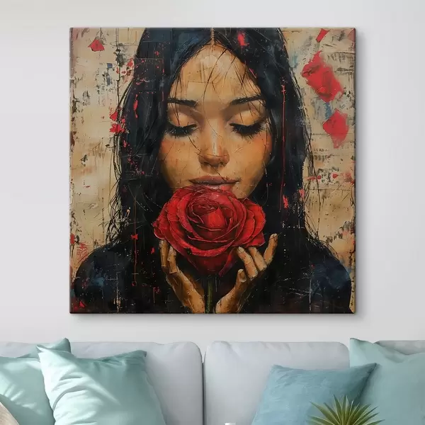 Glezna Meitene ar sarkanu rozi s40898