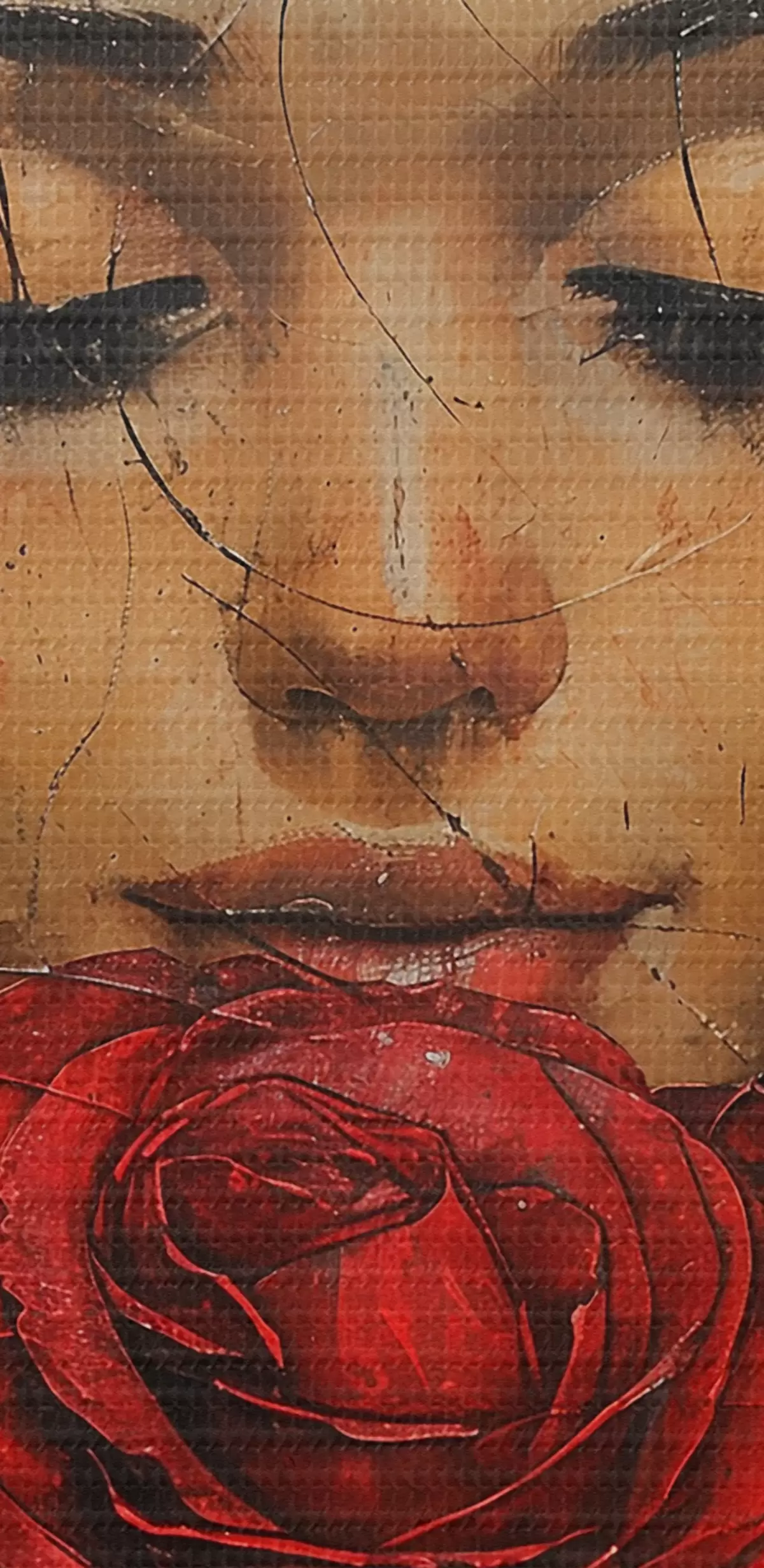 Smalkais diegu pinums uz šī audekla atgādina profesionālu mākslinieku audeklu virsmu.