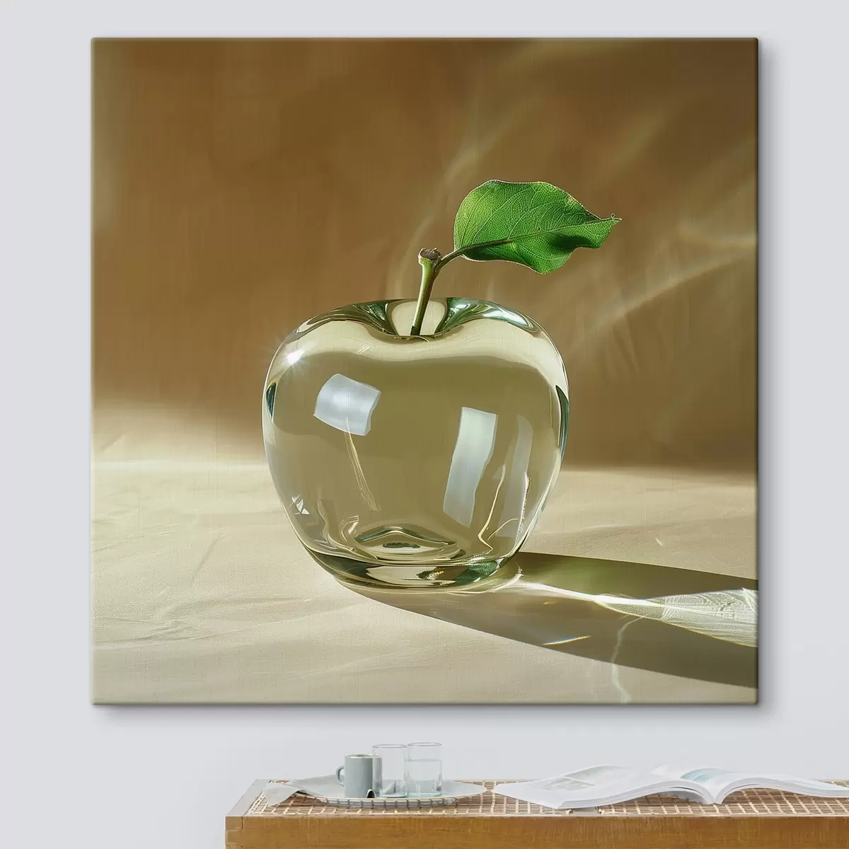 Glezna Caurspīdīgs stikla ābols uz gaiša fona s40913