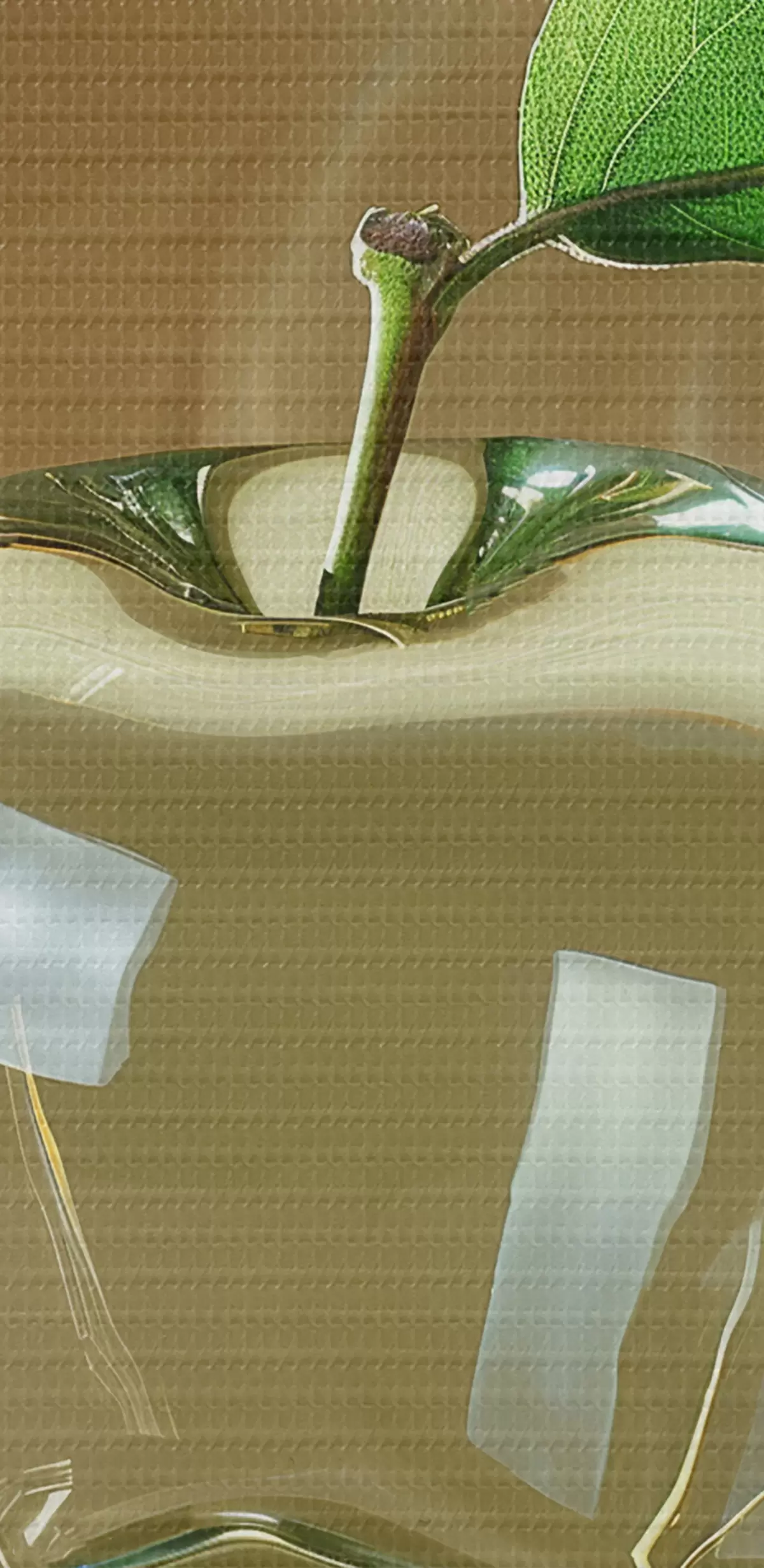 Glezna Caurspīdīgs stikla ābols uz gaiša fona Nr s40913