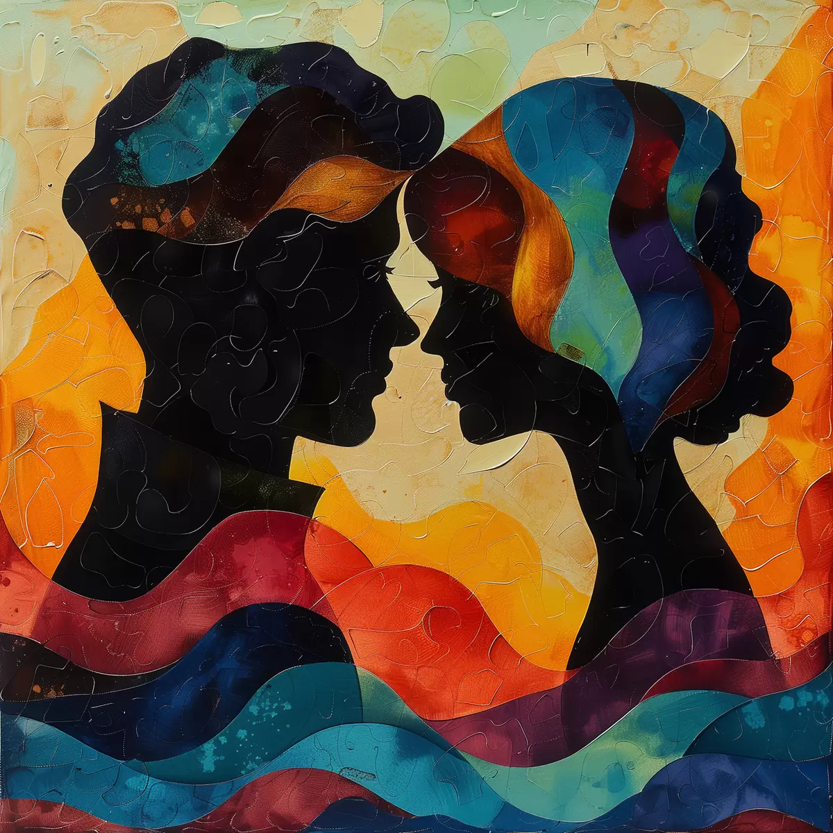 Glezna Akvareļkrāsas mīloša pāra silueti Nr s40938