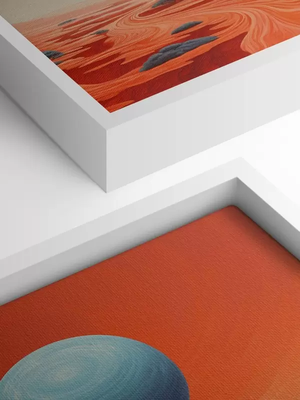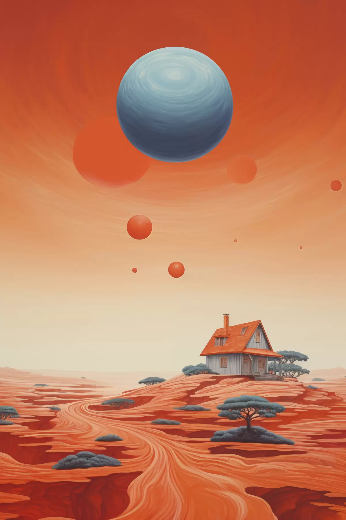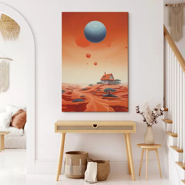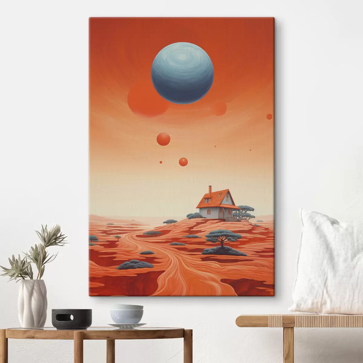 Glezna Tuksnesis ar māju, futūristiskā māksla, kosmiskā, planēta s40944