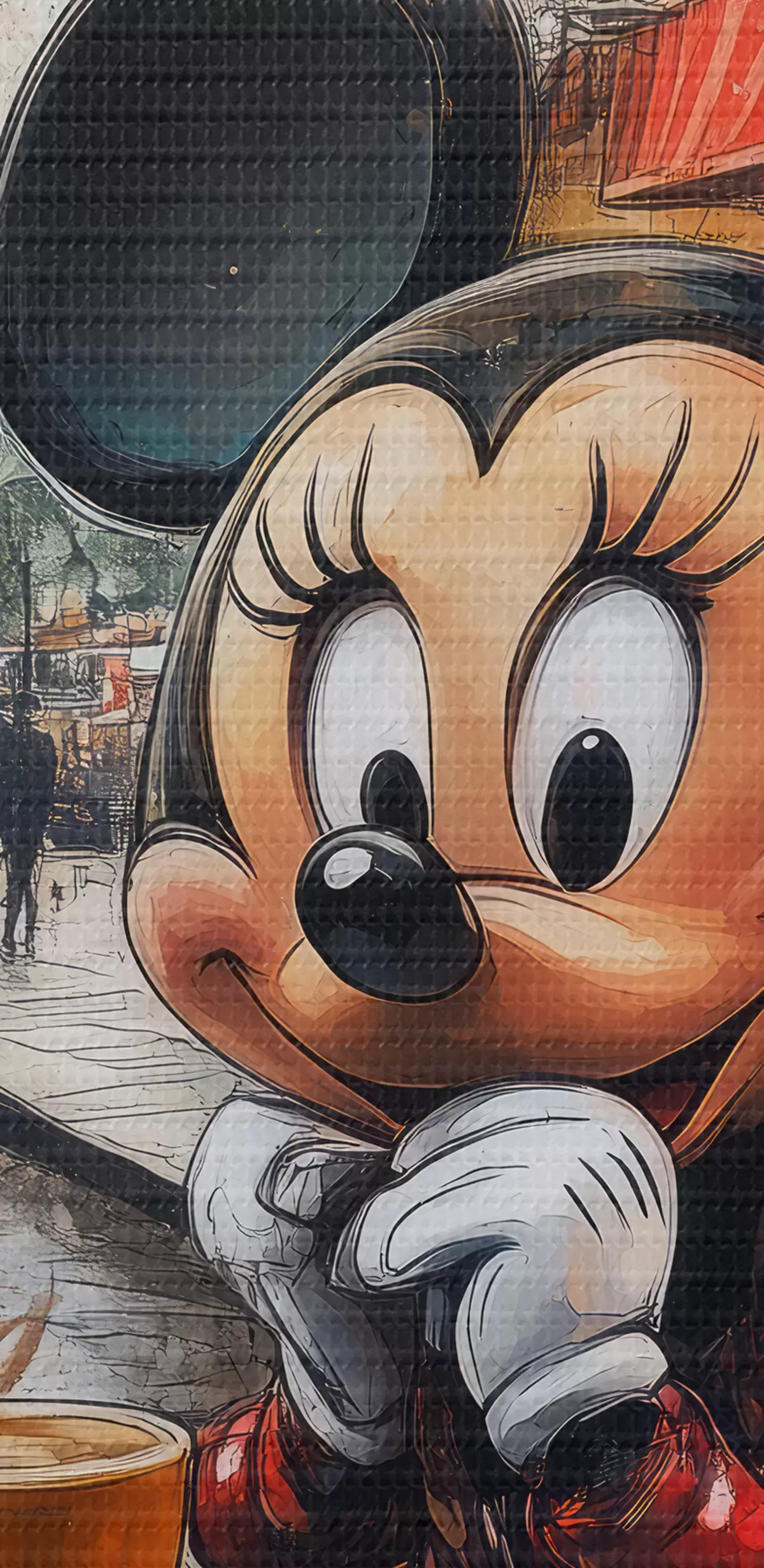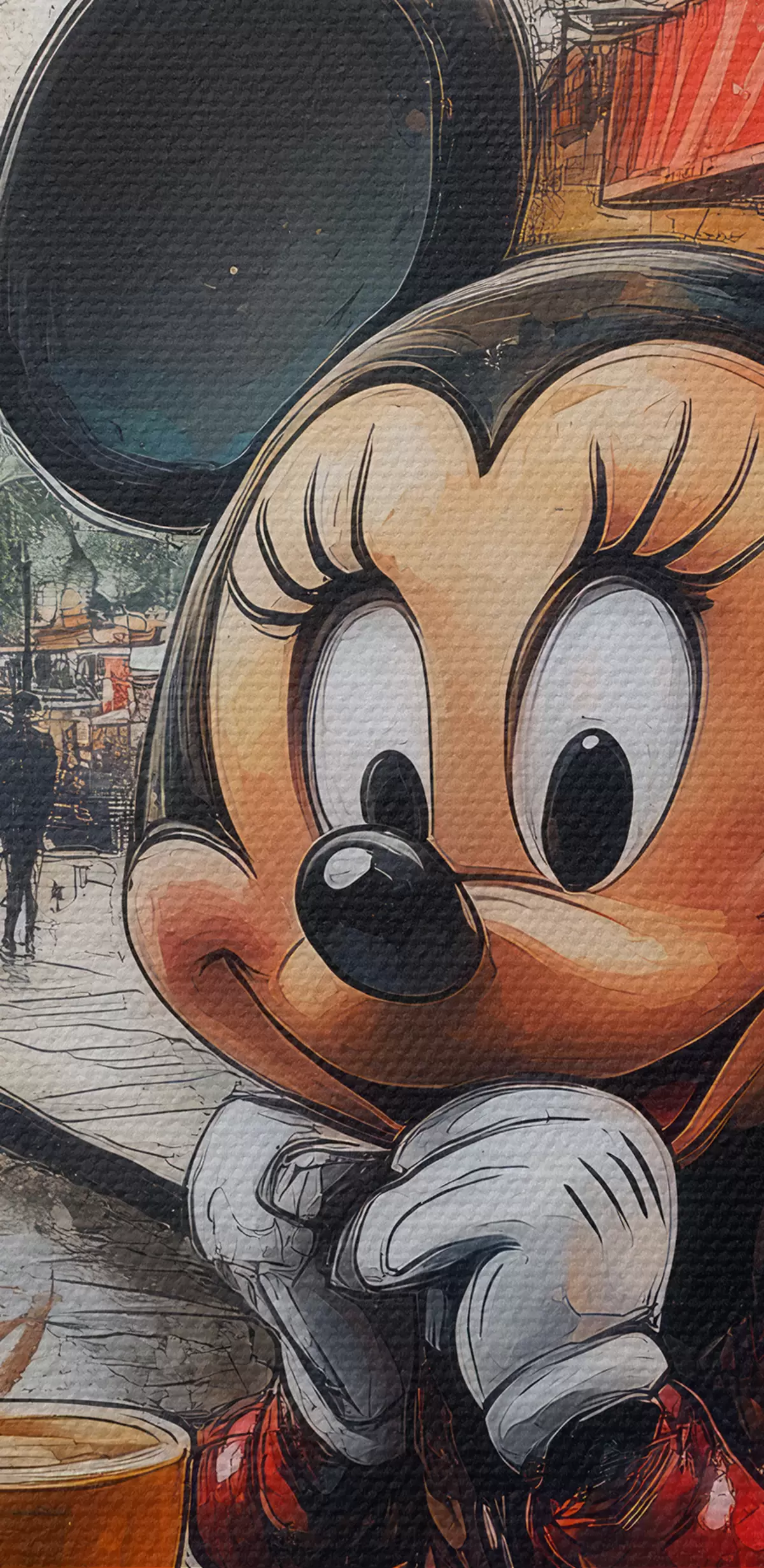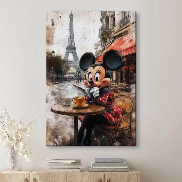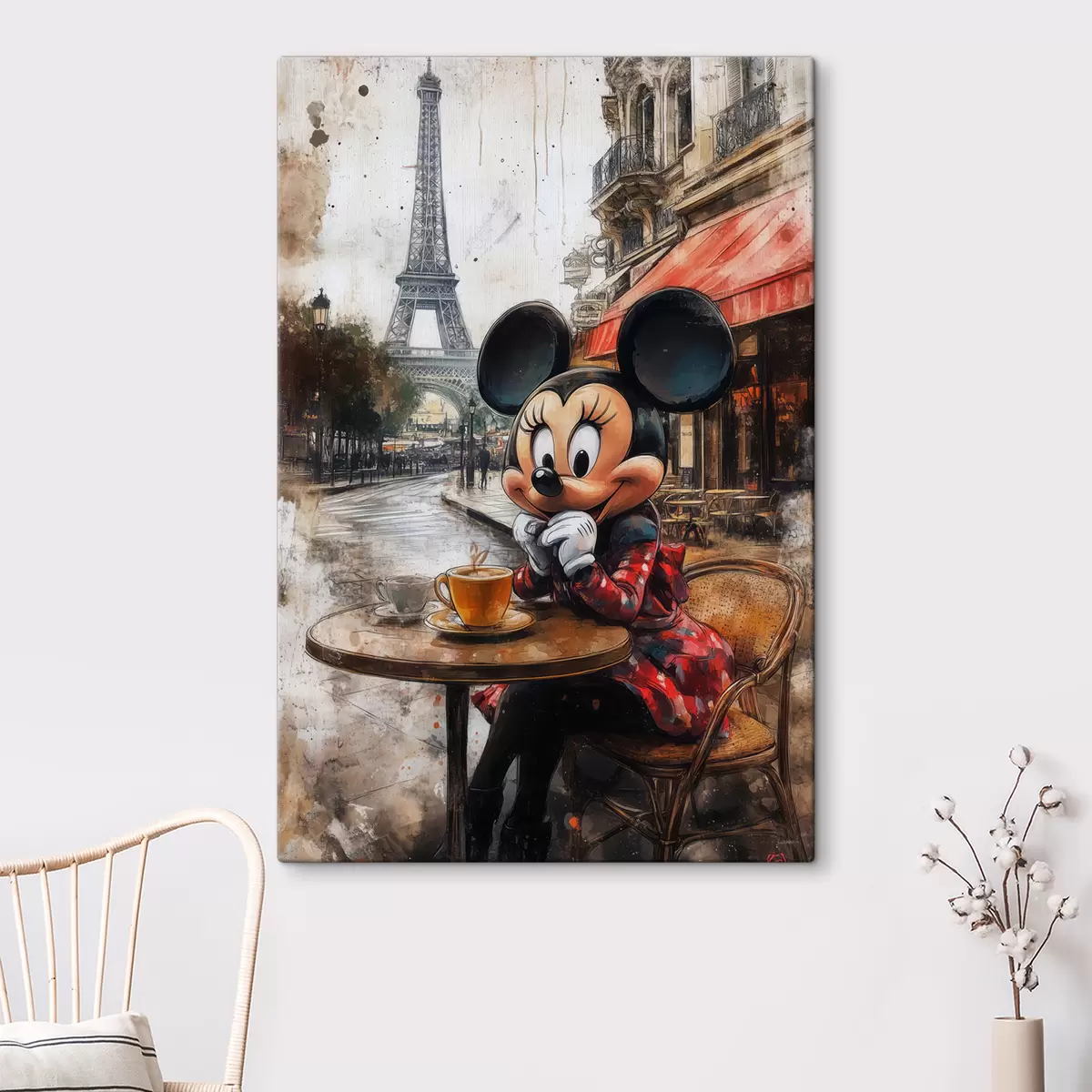 Glezna Mickey Mouse meitene dzer kafiju pret Eifeļa torni Parīzē Nr s40972