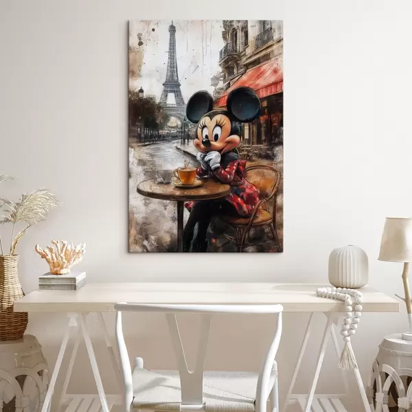 Glezna Mickey Mouse meitene dzer kafiju pret Eifeļa torni Parīzē Nr s40972