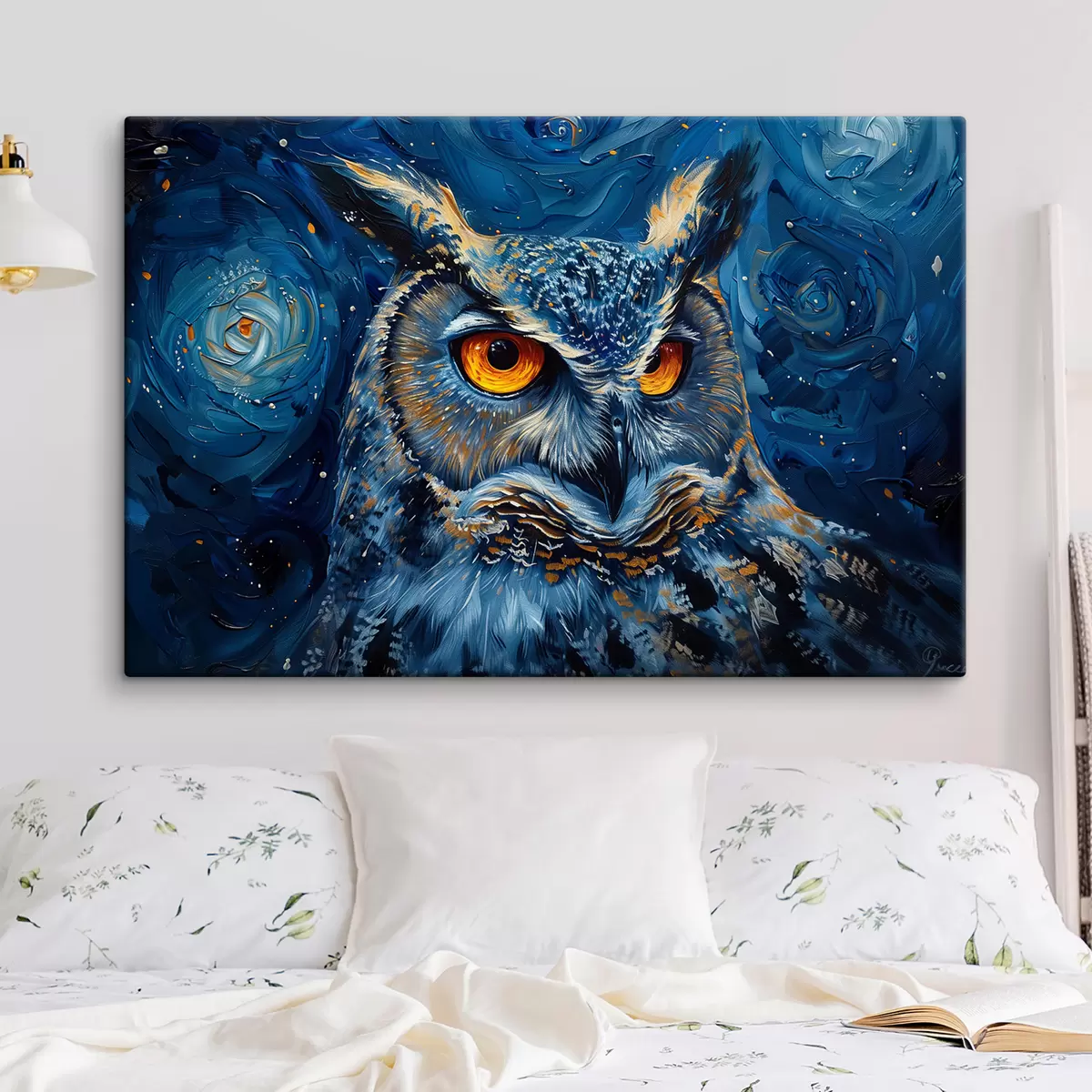Glezna Pūces skatiens naktī ar Van Goga stila debesīm s40982