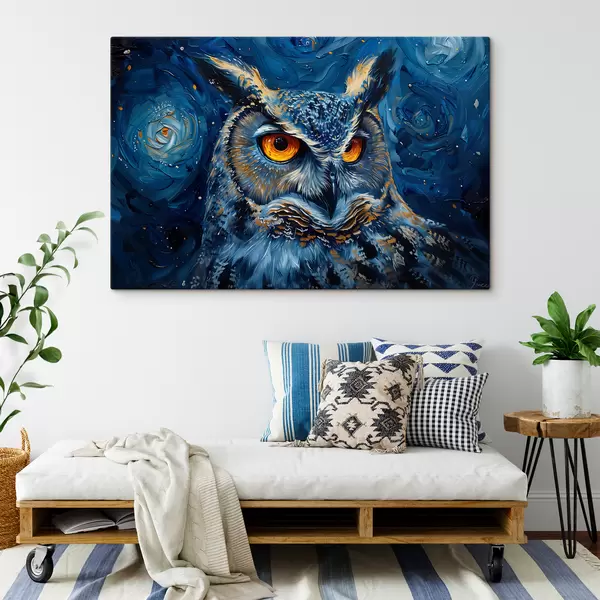 Glezna Pūces skatiens naktī ar Van Goga stila debesīm Nr s40982