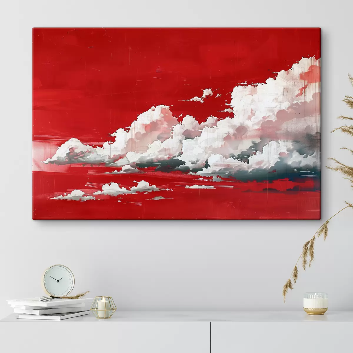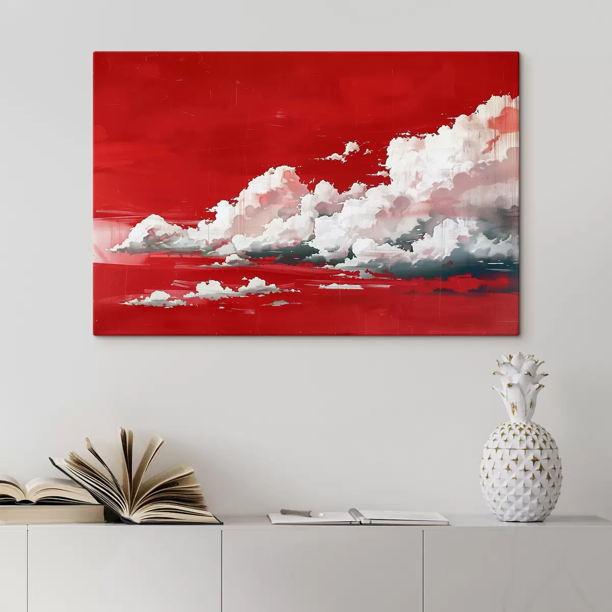 Glezna Vētraini mākoņi uz sarkana fona s40987