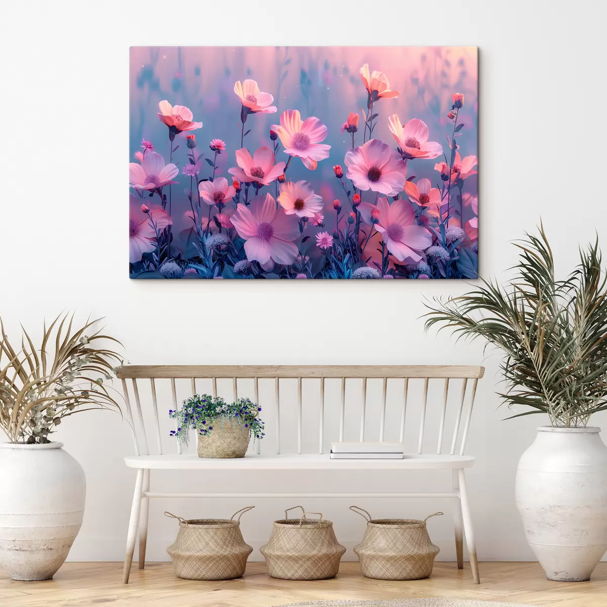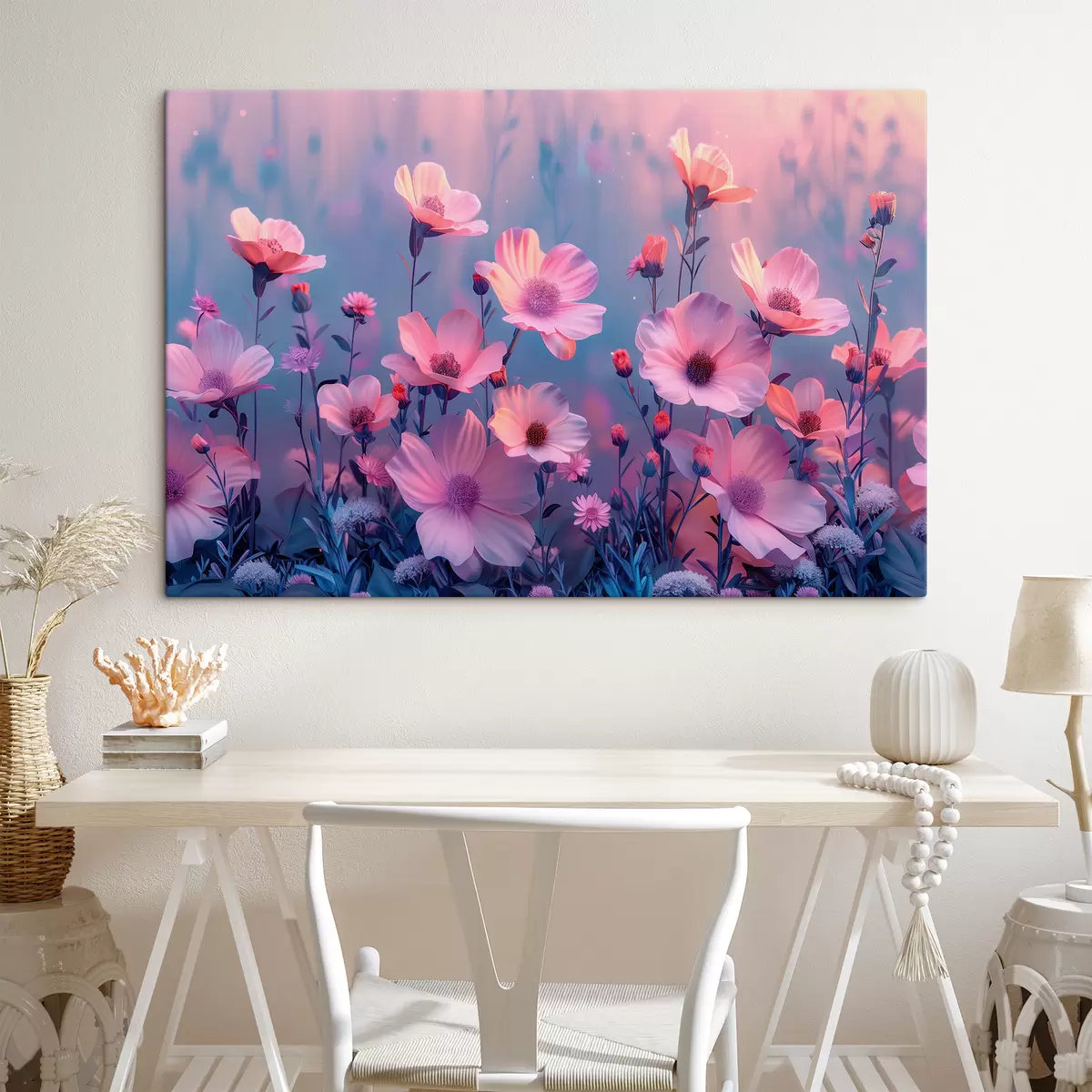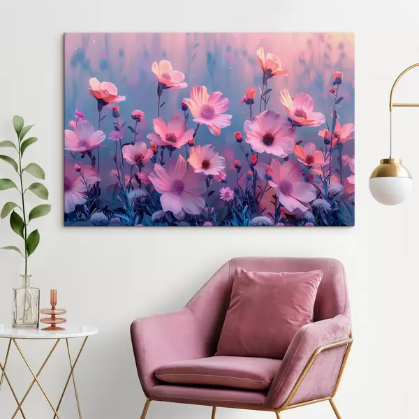 Glezna Pasaku savvaļas ziedi rozā un zilos toņos s40990