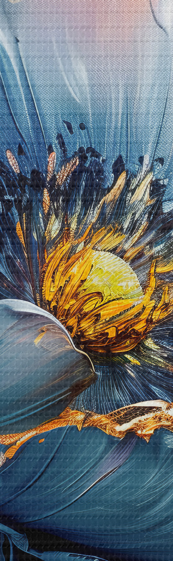 Smalkais diegu pinums uz šī audekla atgādina profesionālu mākslinieku audeklu virsmu.