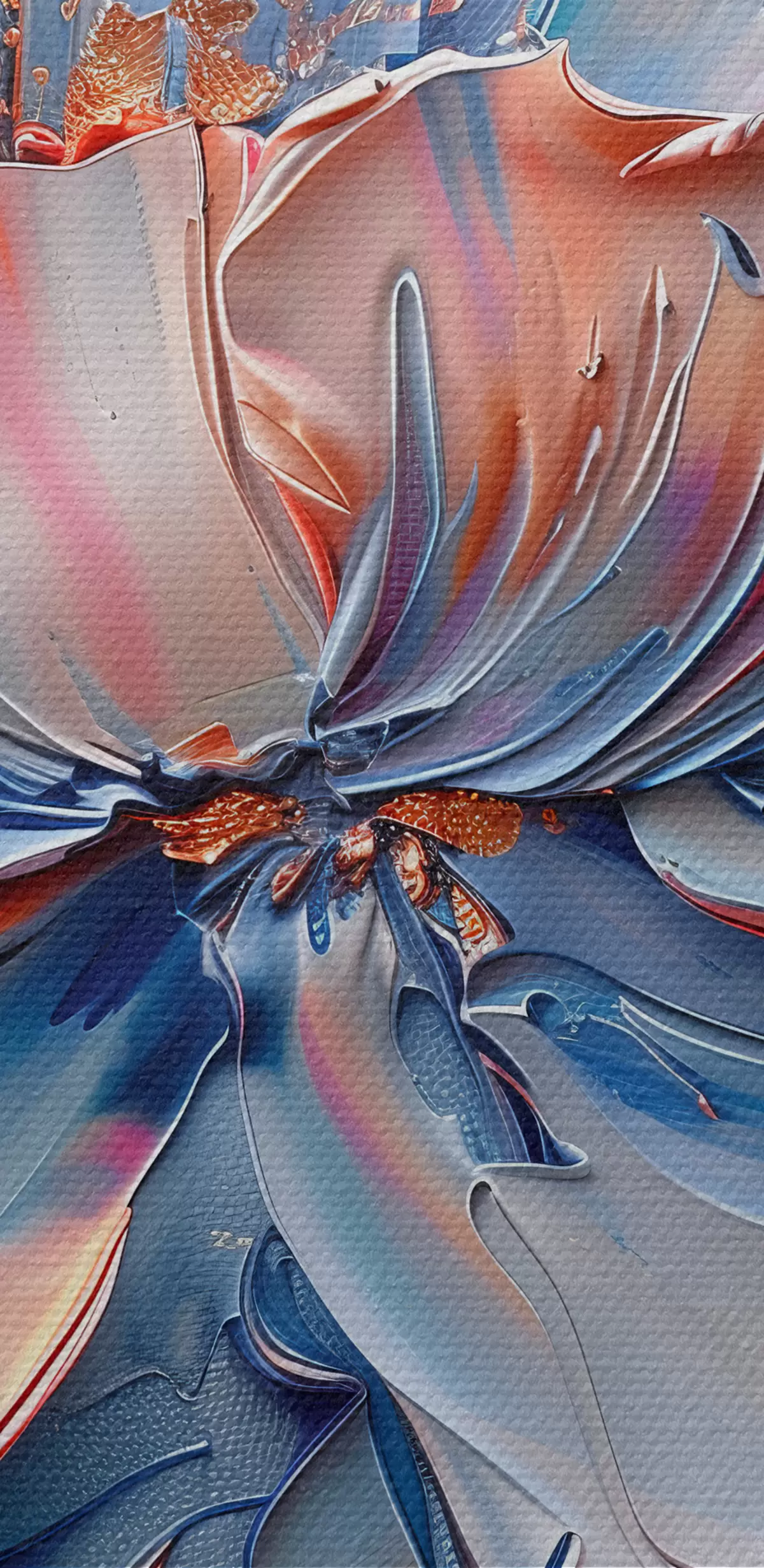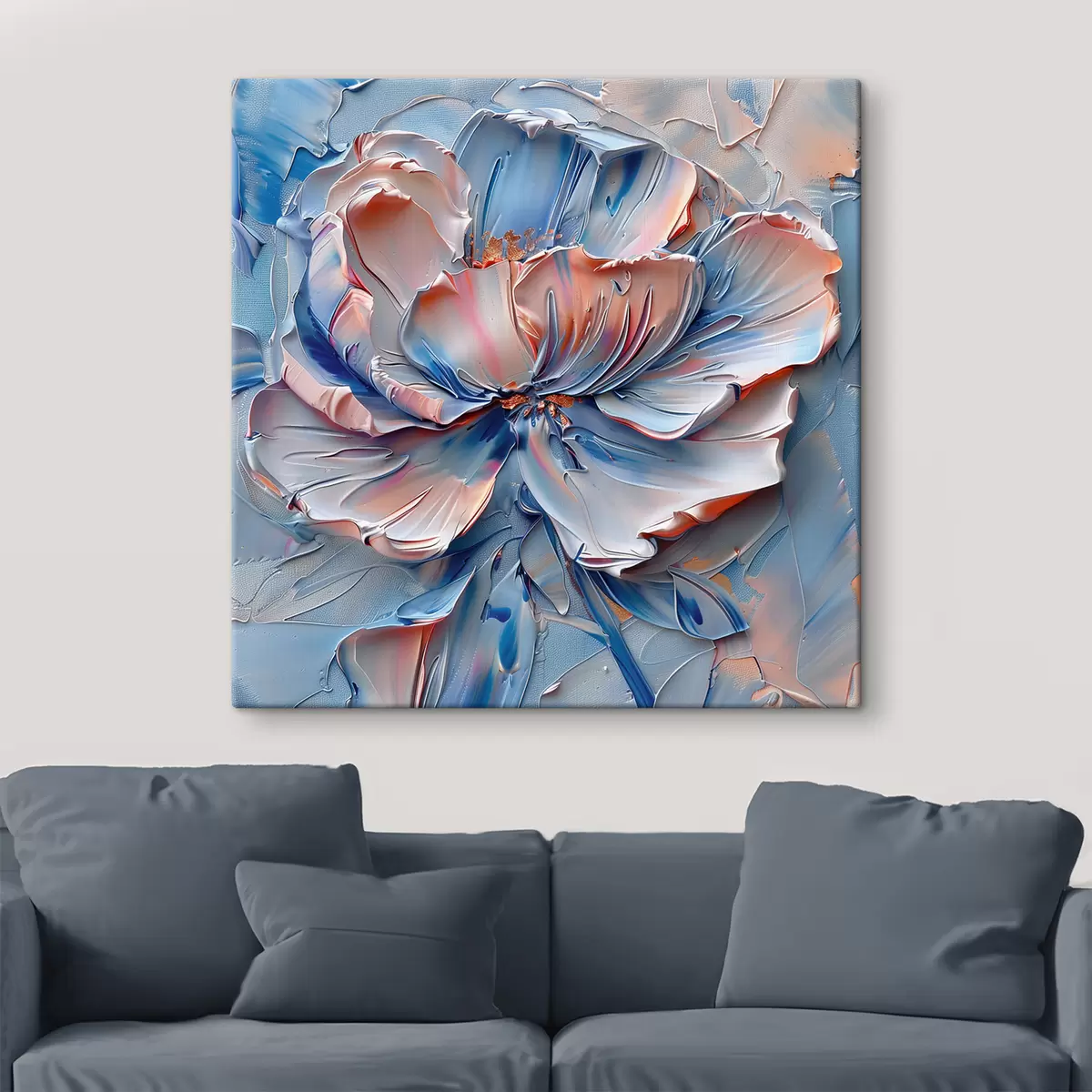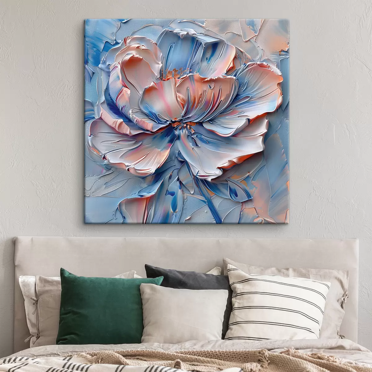 Glezna Liels zieds ar drosmīgiem triepieniem ar otu zilā un persiku krāsā Nr s41004