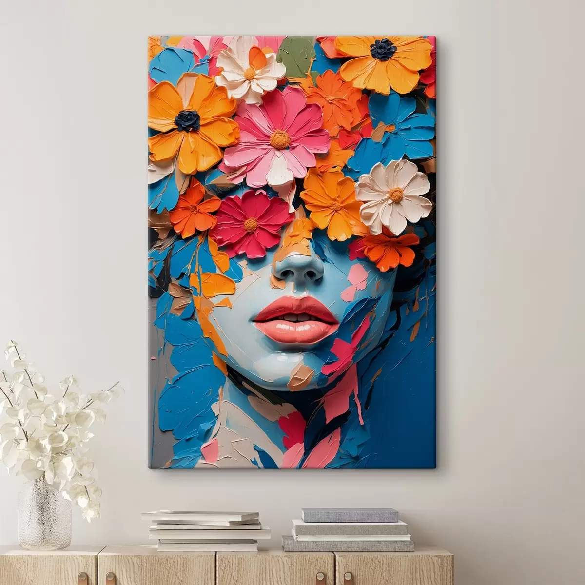 Glezna Meitenes seja eļļā, klāta ar ziediem s41023