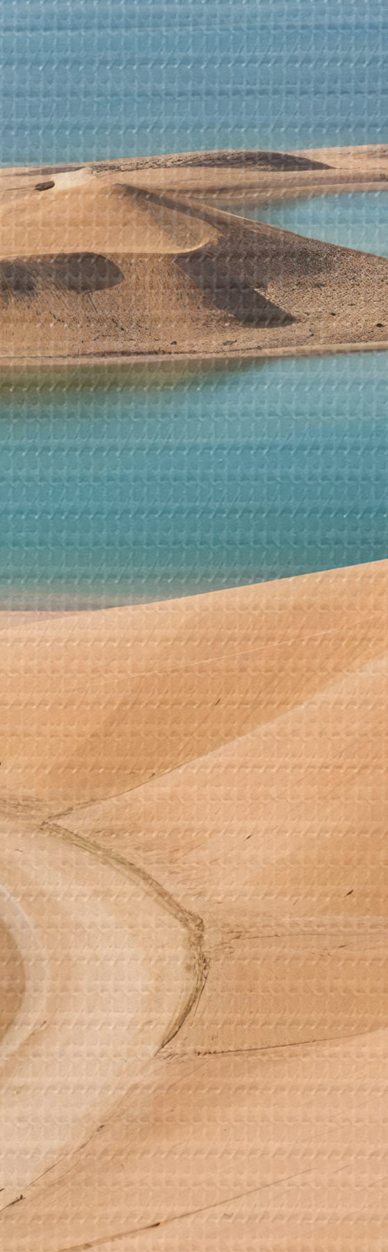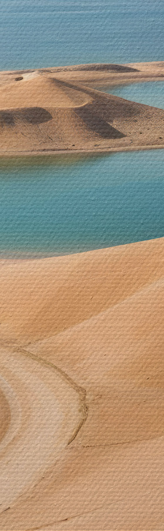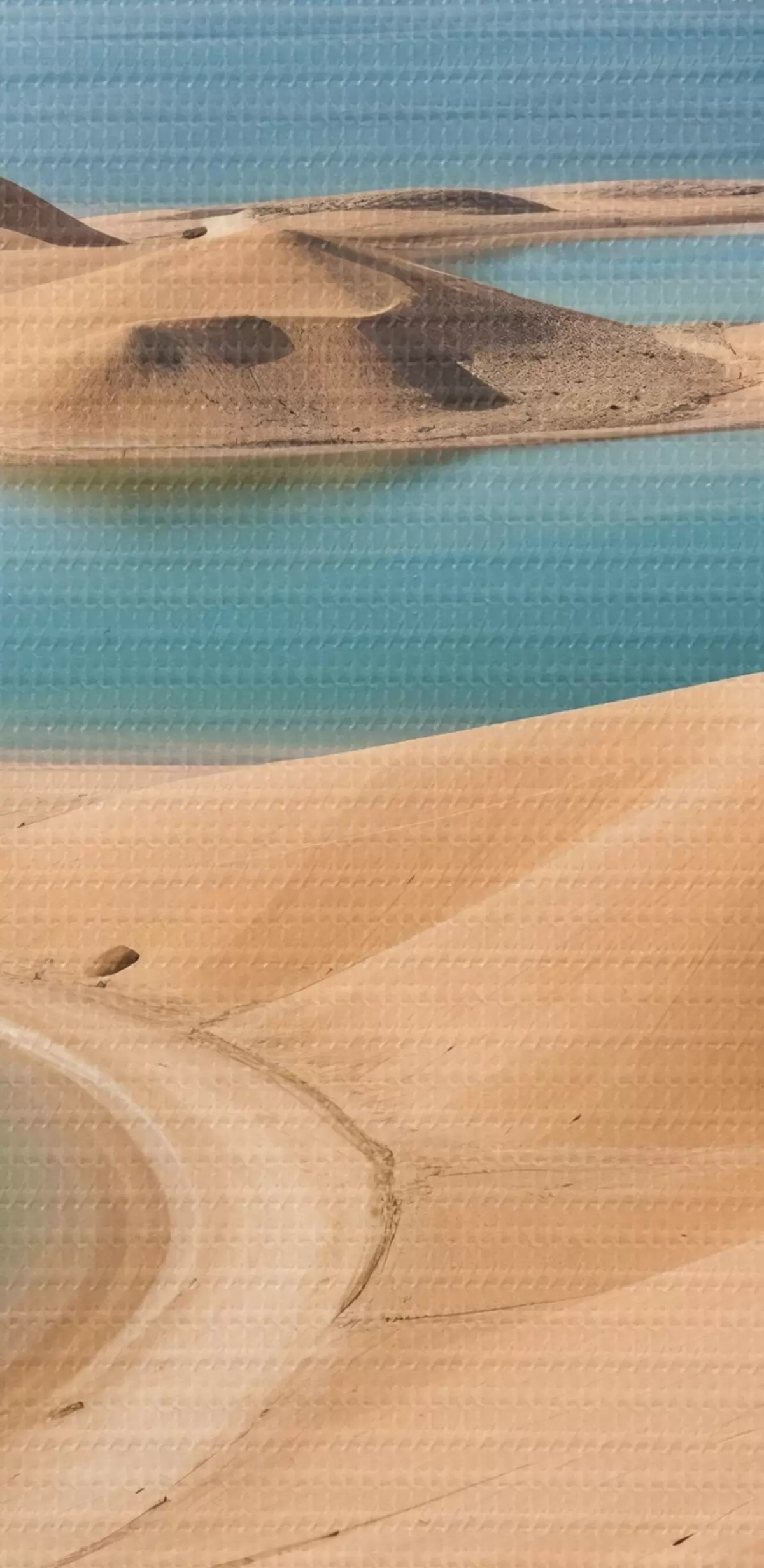 Glezna Plaša tuksneša ainava ar smilšu kāpām un tirkīza ezeriem, ko ieskauj nelīdzeni kalni s41087
