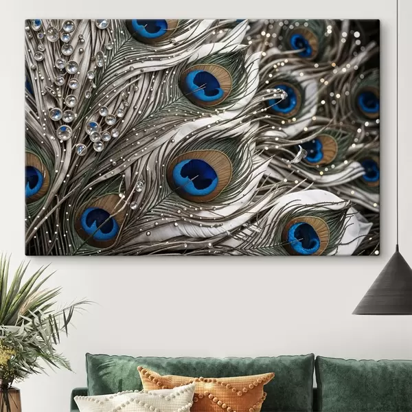 Glezna Spilgtas pāvu spalvas ar sarežģītiem rakstiem un spilgtiem ziliem rakstiem Nr s41103