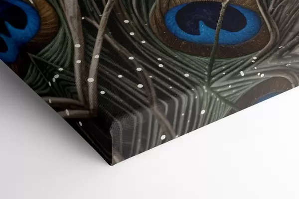 Glezna Spilgtas pāvu spalvas ar sarežģītiem rakstiem un spilgtiem ziliem rakstiem s41103