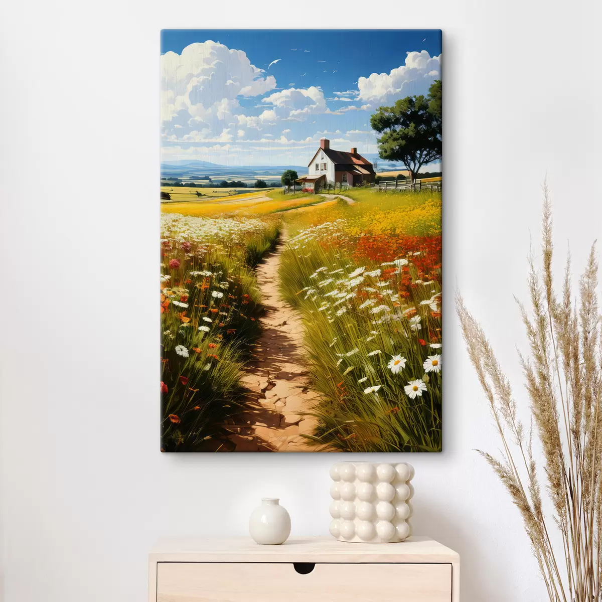 Glezna ceļš ziedošā laukā un māja Nr s41109