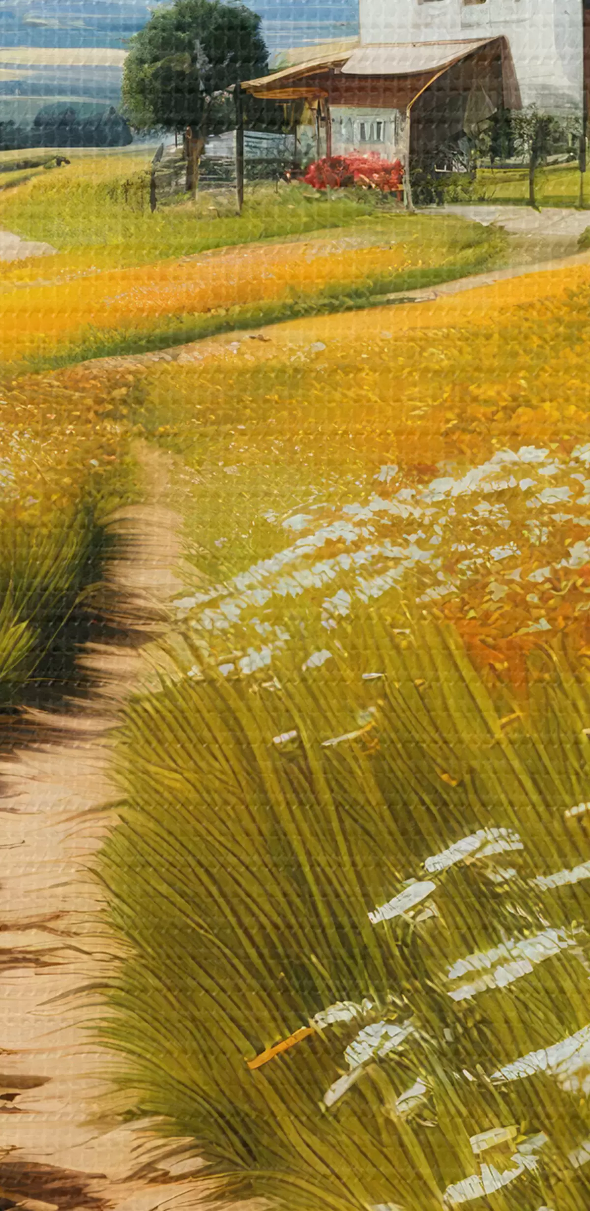 Glezna ceļš ziedošā laukā un māja Nr s41109