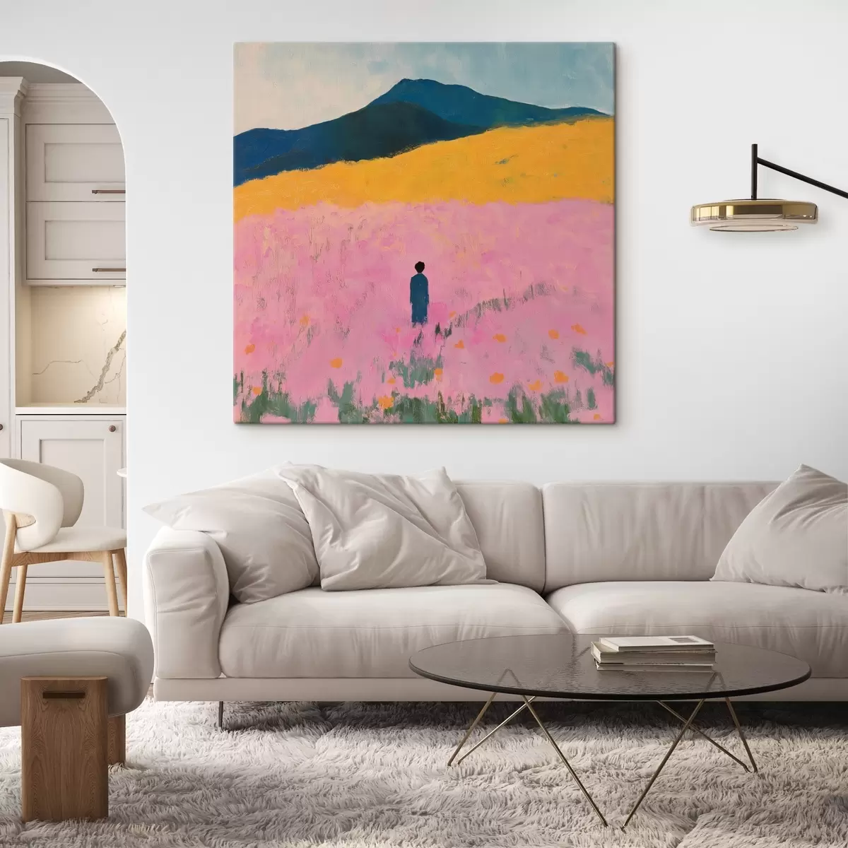 Glezna Vīrietis laukā ar rozā ziediem s41164