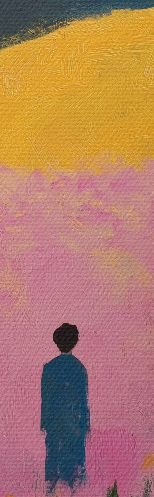 Glezna Vīrietis laukā ar rozā ziediem Nr s41164
