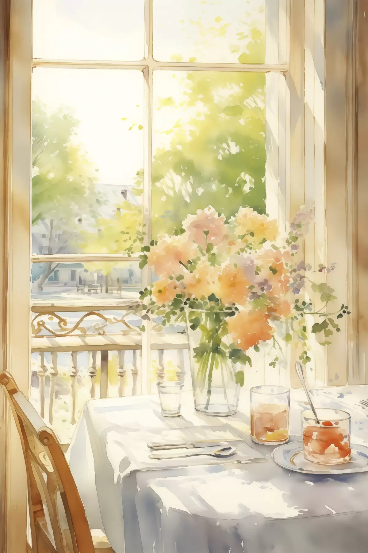 Glezna Romantiskas vakariņas, akvarelis, boho stils, ziedi, daba Nr s41165