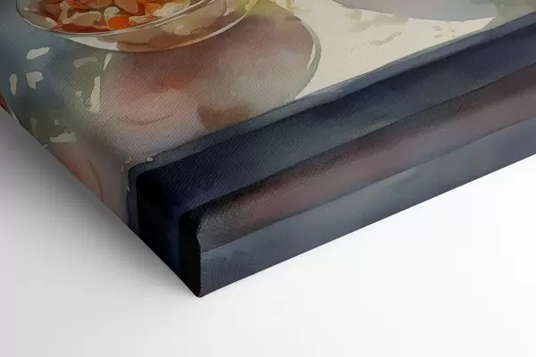 Glezna Akvareļu vakariņas, pilsētas skats, ziedi, daba, zaļie salāti Nr s41166