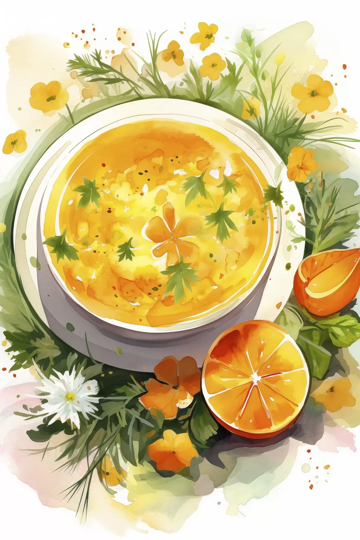 Glezna Ķirbju zupa, akvarelis, rudens krāsas, oranžs Nr s41170