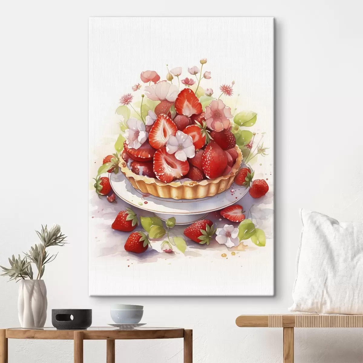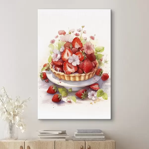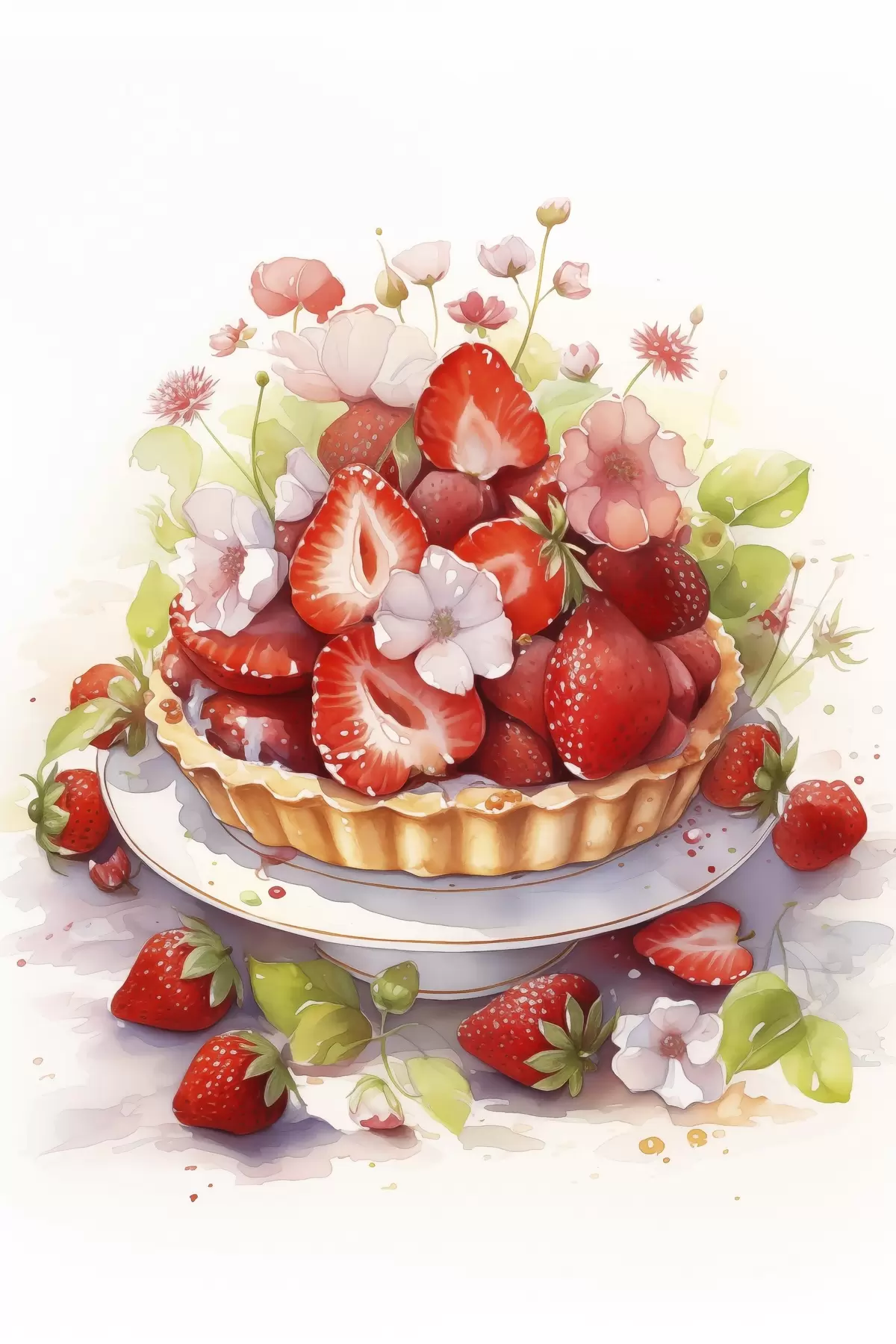 Glezna Zemeņu pīrāgs, akvarelis, ziedi Nr s41177
