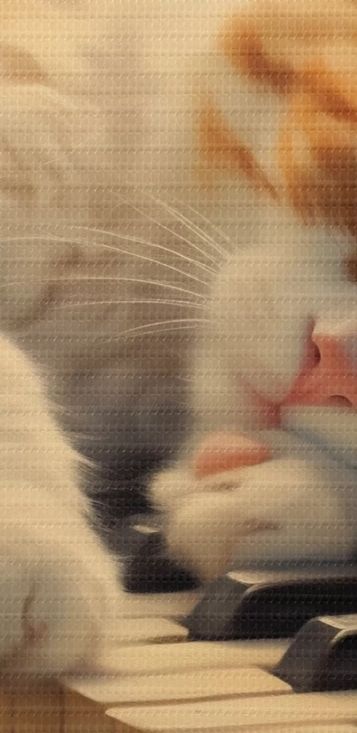 Smalkais diegu pinums uz šī audekla atgādina profesionālu mākslinieku audeklu virsmu.