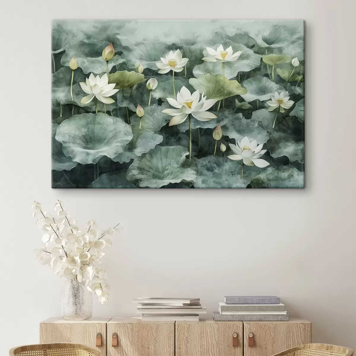 Glezna Lotusi dīķī, akvarelis, zaļumi Nr s41228