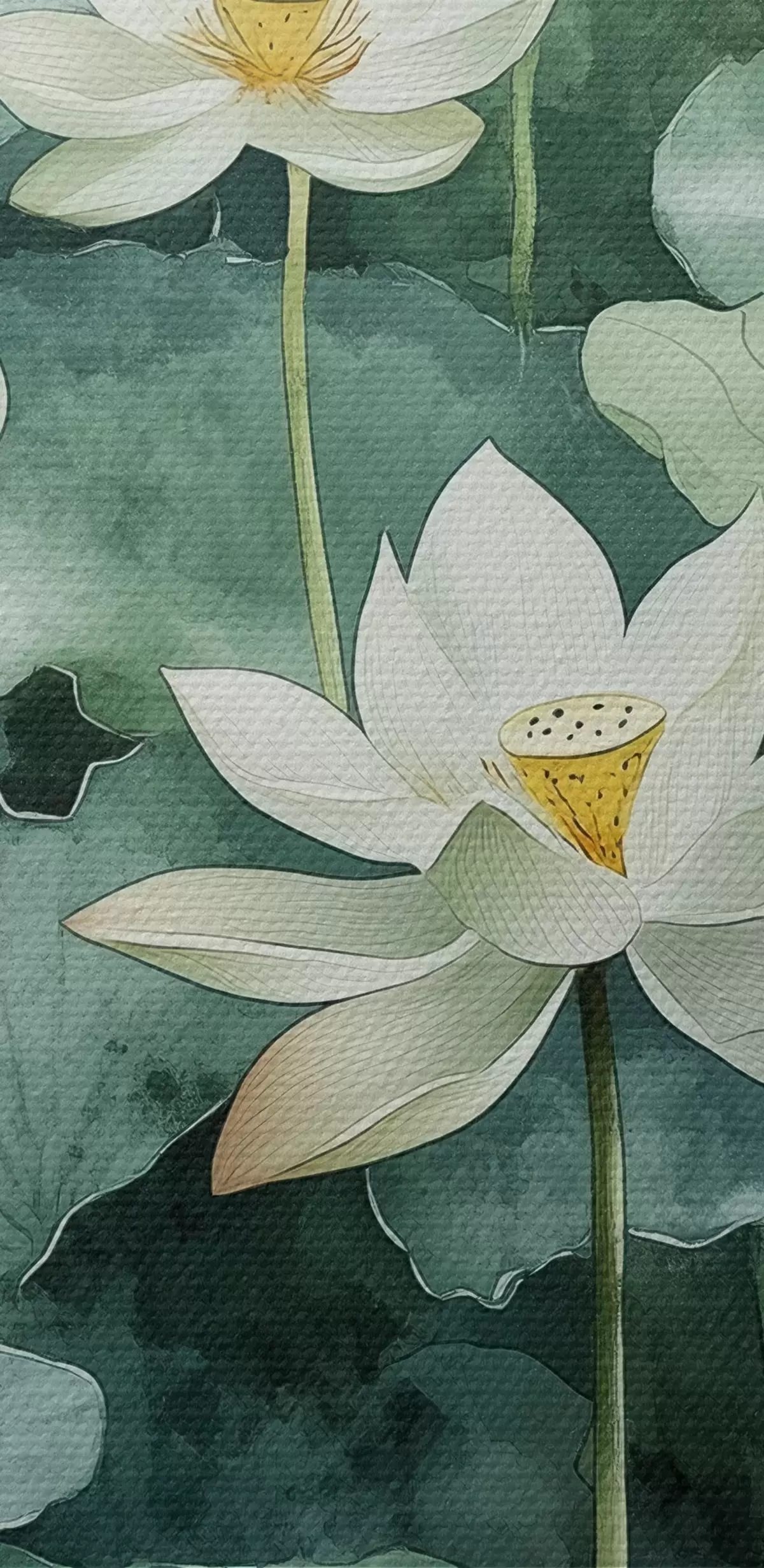 Glezna Lotusi dīķī, akvarelis, zaļumi s41228
