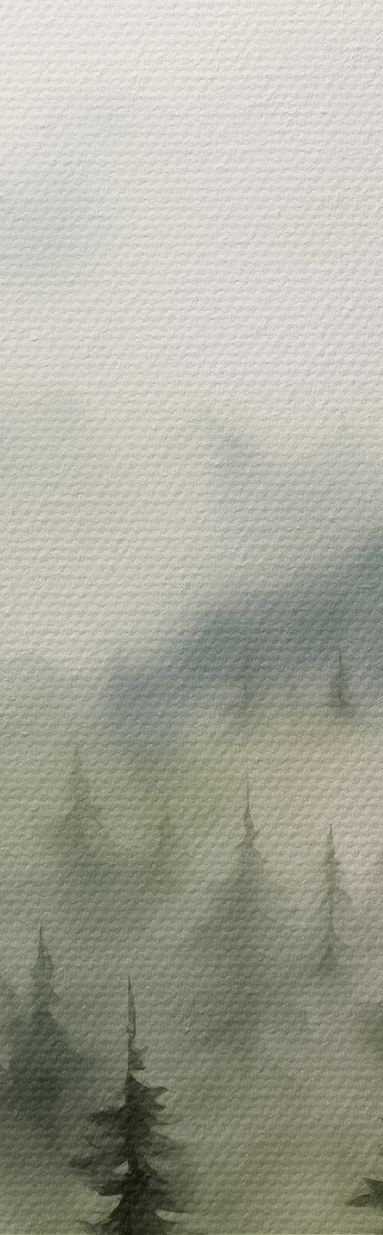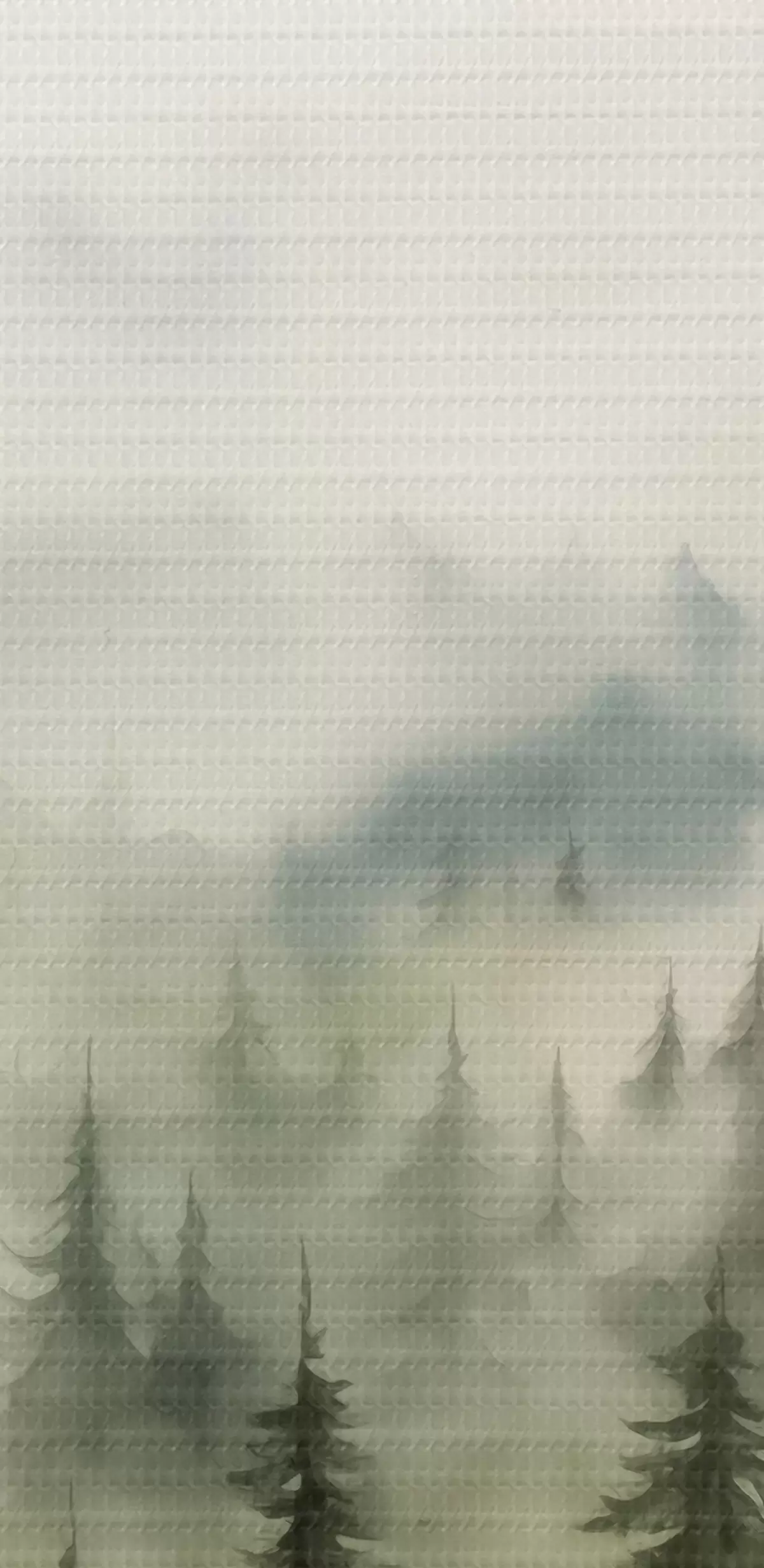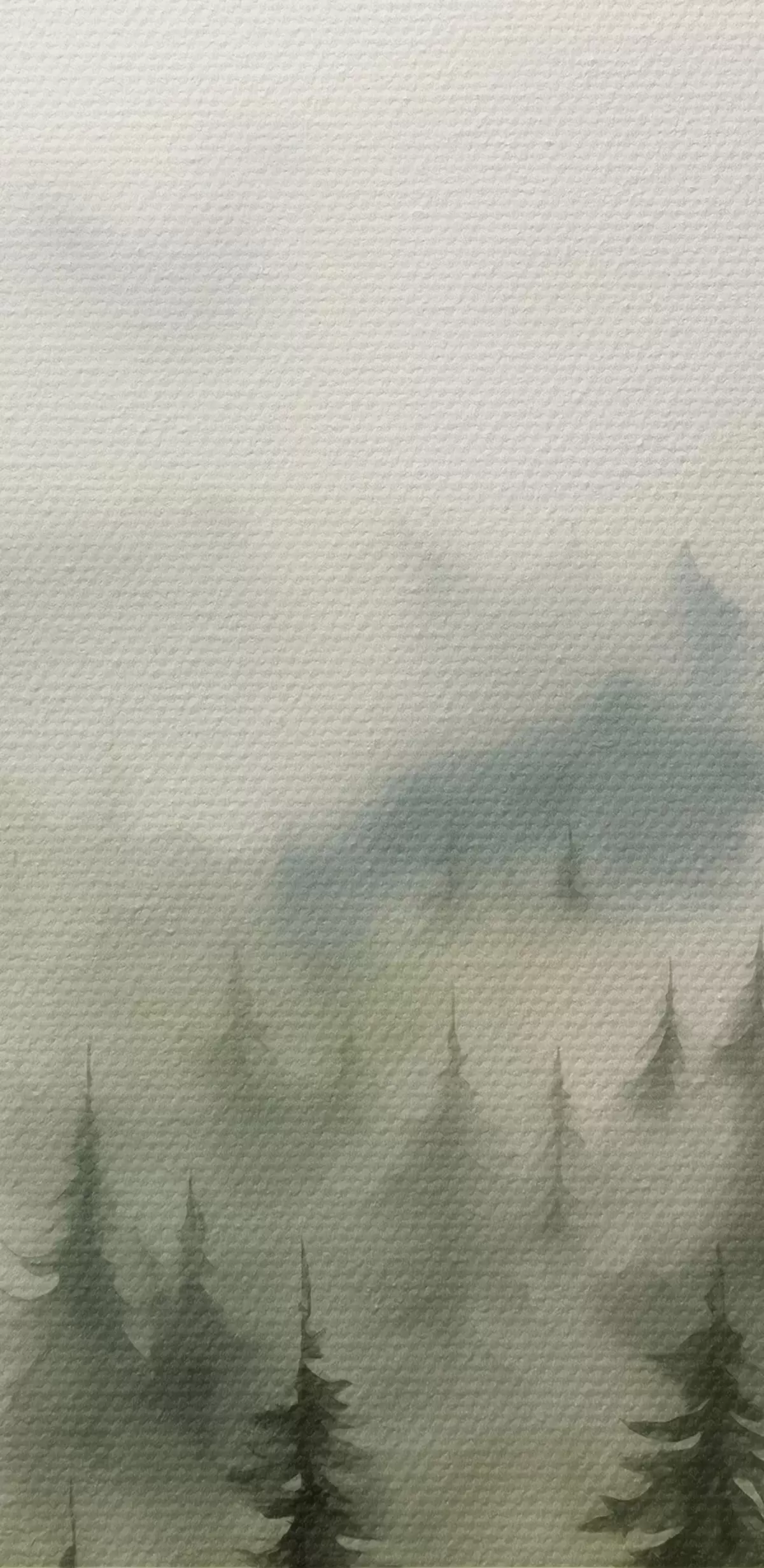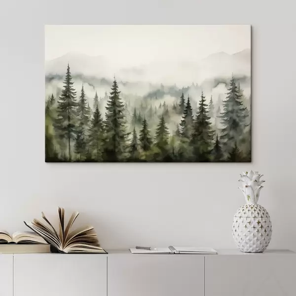 Glezna Zaļš mežs uz kalnu kalnu un miglas akvareļu fona Nr s41241
