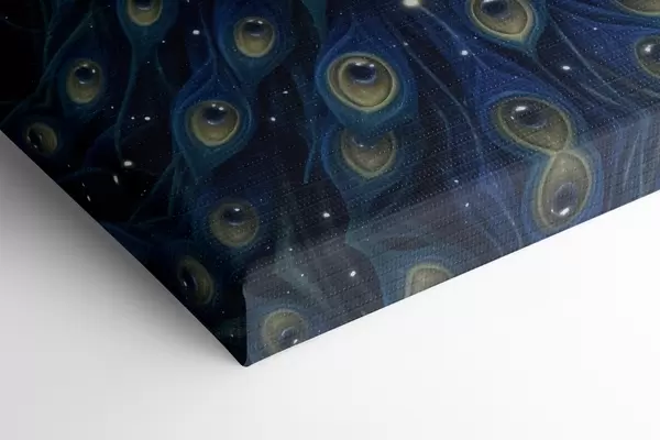 Glezna Spilgts un majestātisks pāvs uz zvaigžņotas nakts debess fona, kas rada maģisku un ēterisku atmosfēru s41256