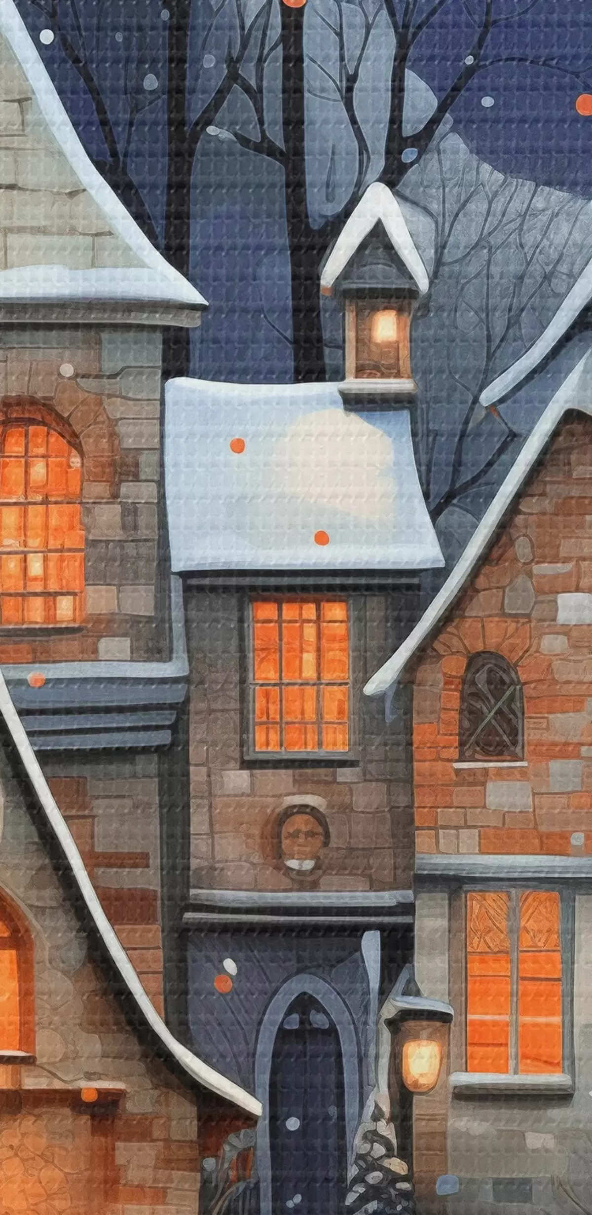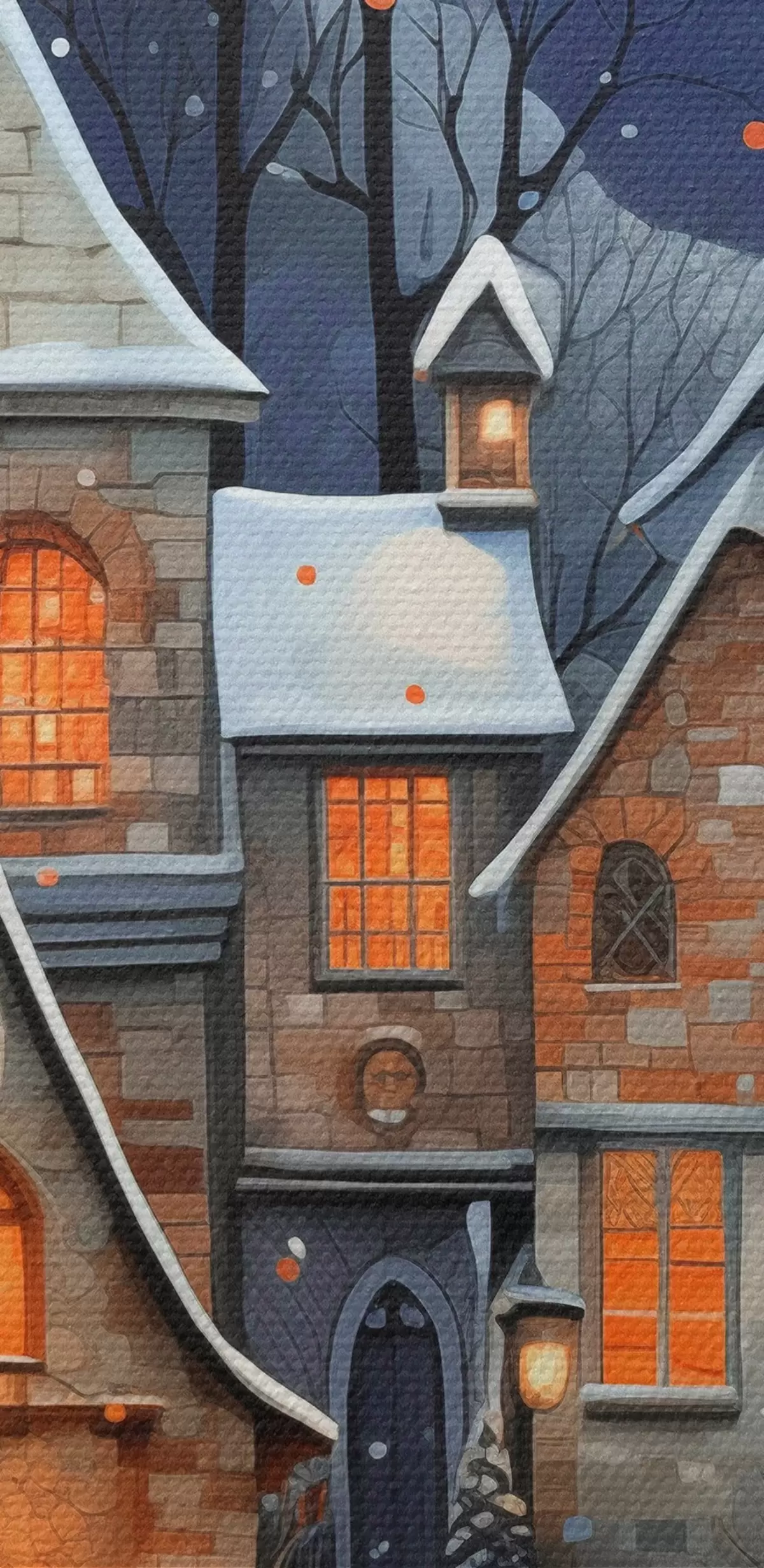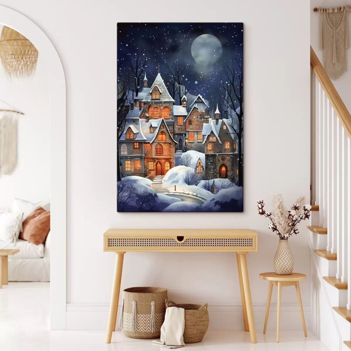 Glezna Mājas sniegā uz zvaigžņoto nakts debesu fona Nr s41276