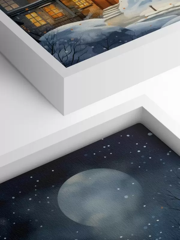 Glezna Mājas sniegā uz zvaigžņoto nakts debesu fona s41276