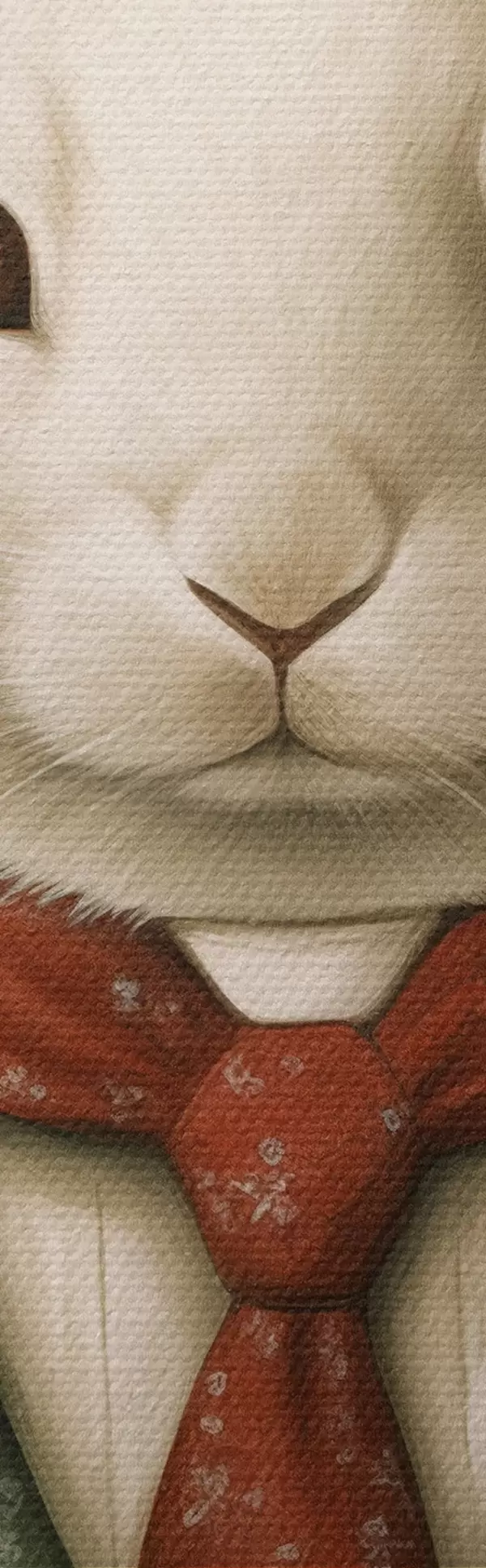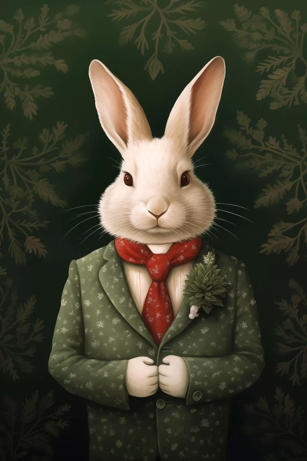 Glezna Balts zaķis zaļā uzvalkā un sarkanā kaklasaitē ilustrācija Nr s41278