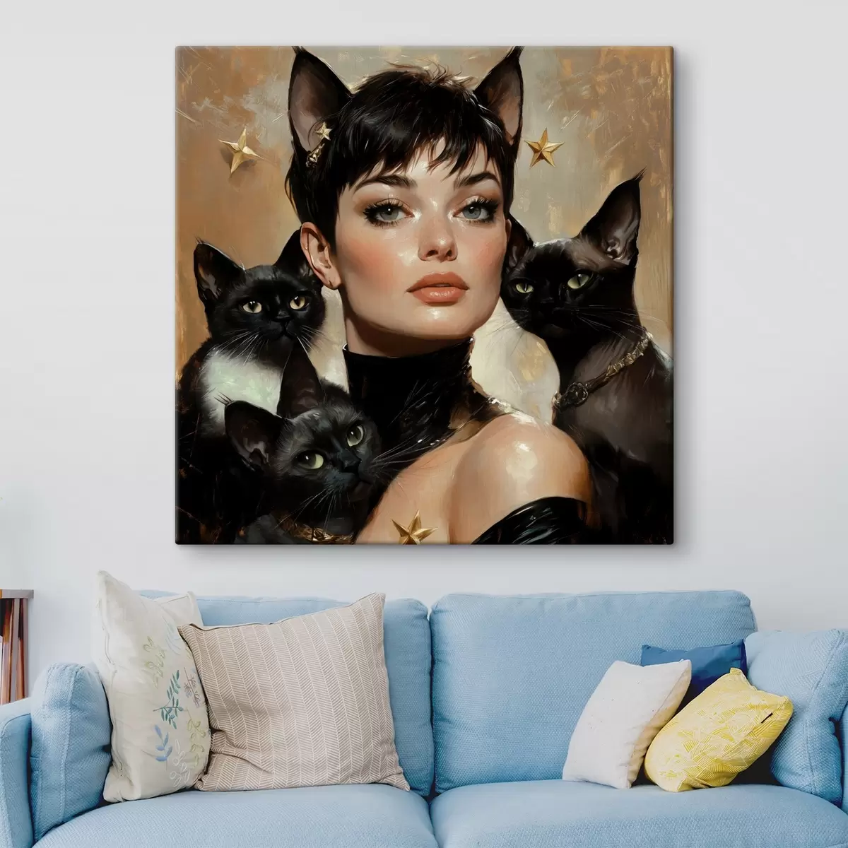 Glezna Kaķu meitene ar melniem kaķiem s41344