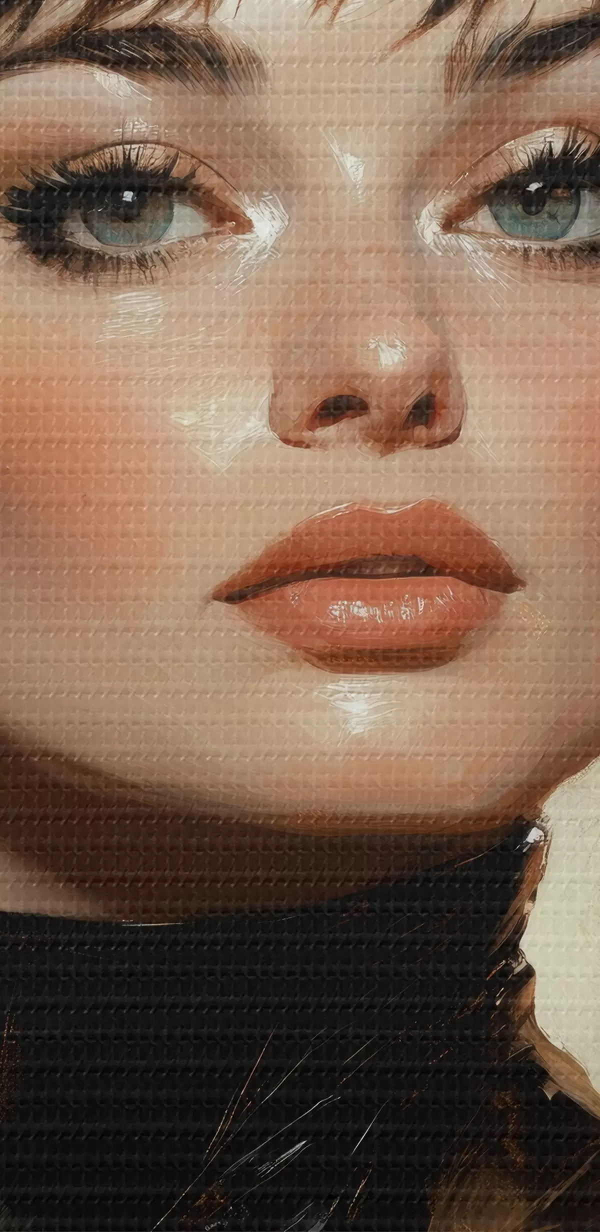 Smalkais diegu pinums uz šī audekla atgādina profesionālu mākslinieku audeklu virsmu.