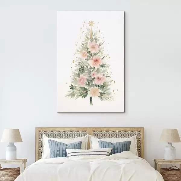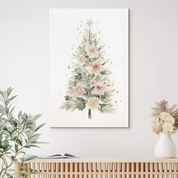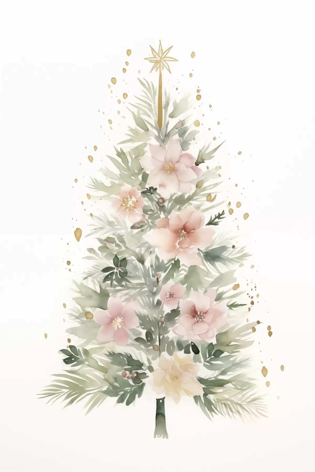 Glezna Akvarelis Ziemassvētku eglīte, priedes, ziedu kompozīcija Nr s41360