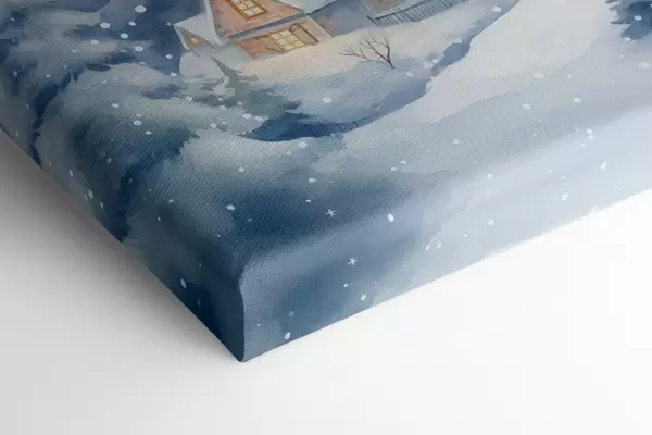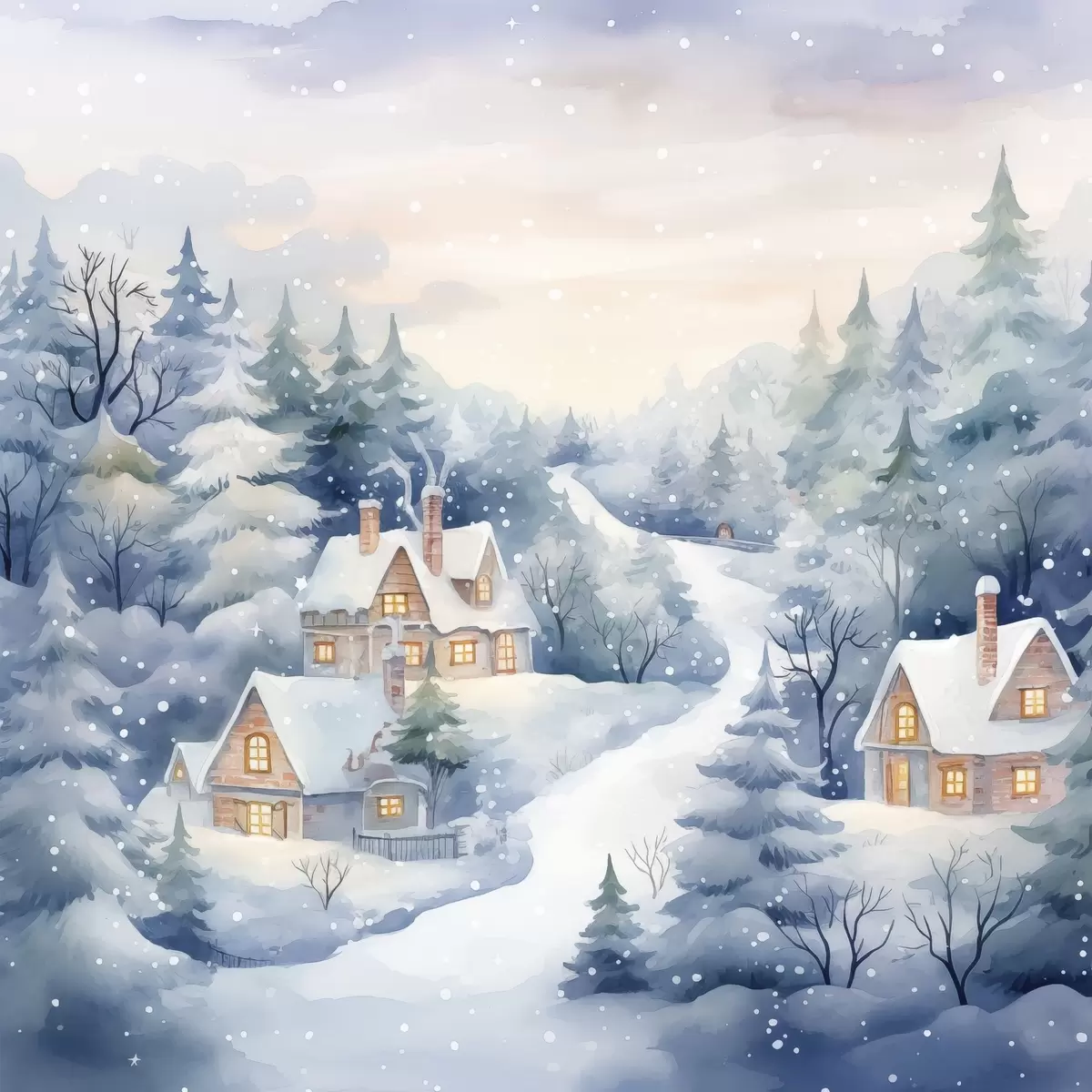 Glezna Akvareļu ziemas ainava, priežu mežs, mājas Nr s41387