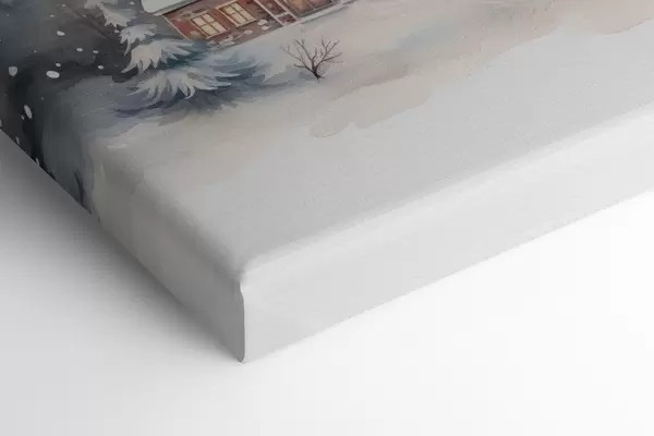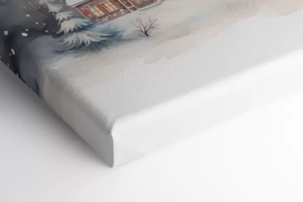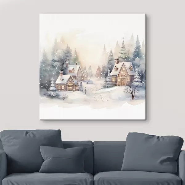Glezna Ziemas ainava, priežu mežs, skaistas mājas, akvarelis, susnets Nr s41390