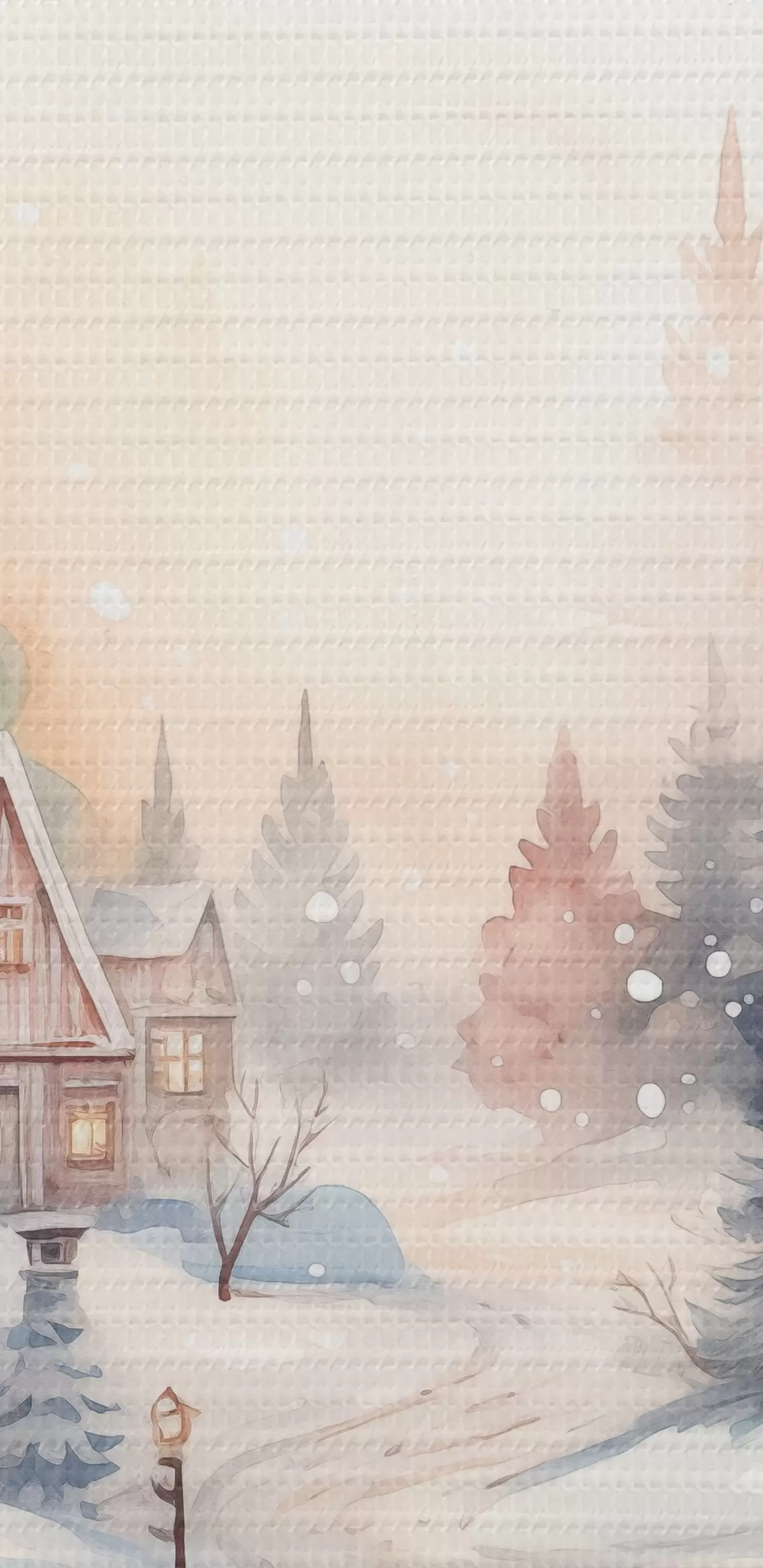Glezna Ziemas ainava, priežu mežs, skaistas mājas, akvarelis, susnets s41390