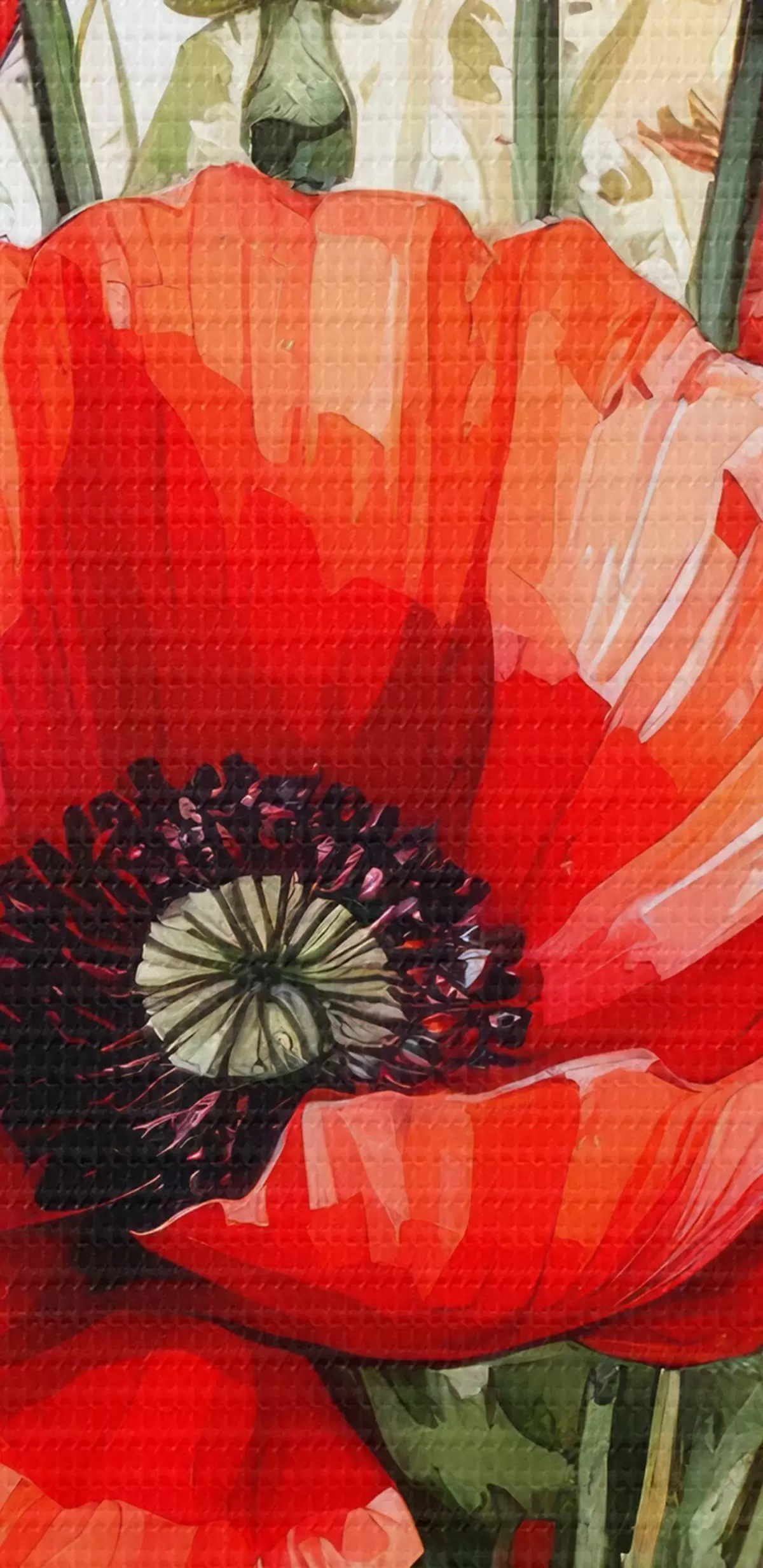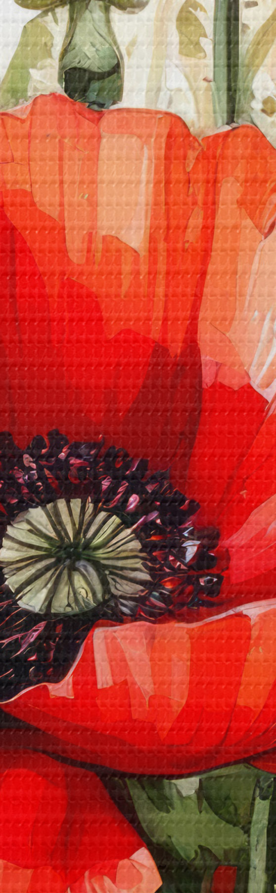 Smalkais diegu pinums uz šī audekla atgādina profesionālu mākslinieku audeklu virsmu.