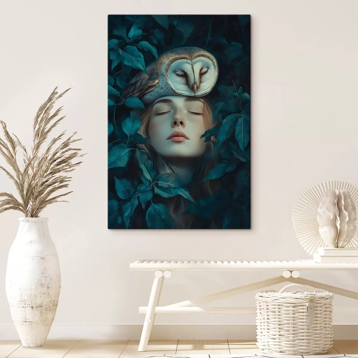 Glezna Sieviete ar pūci zaļās lapās, mierīga, daba s41445