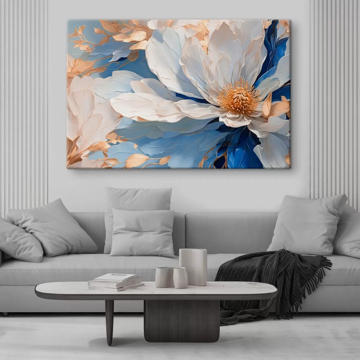 Glezna Ziedu ar baltām un zilām ziedlapiņām tuvplānā Nr s41512