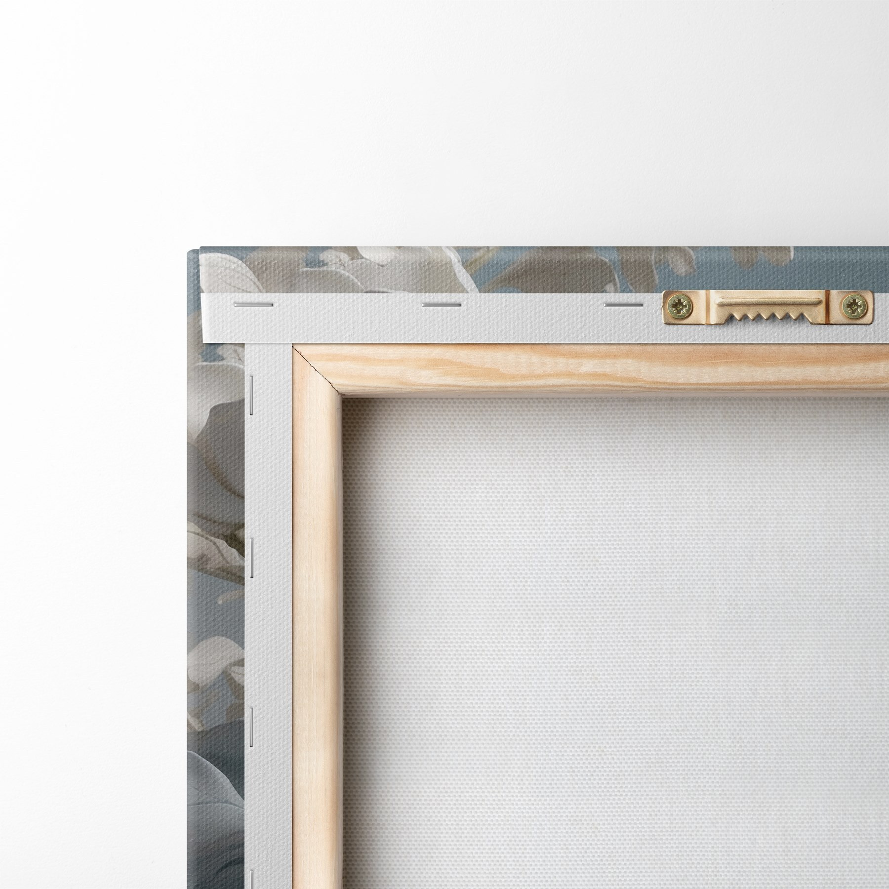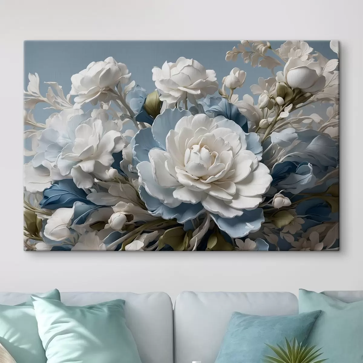 Glezna Balti ziedi un lapas uz zila fona s41527