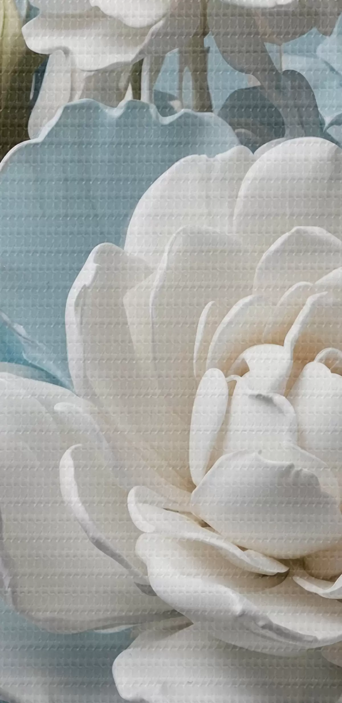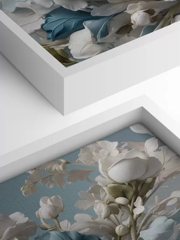 Glezna Balti ziedi un lapas uz zila fona Nr s41527