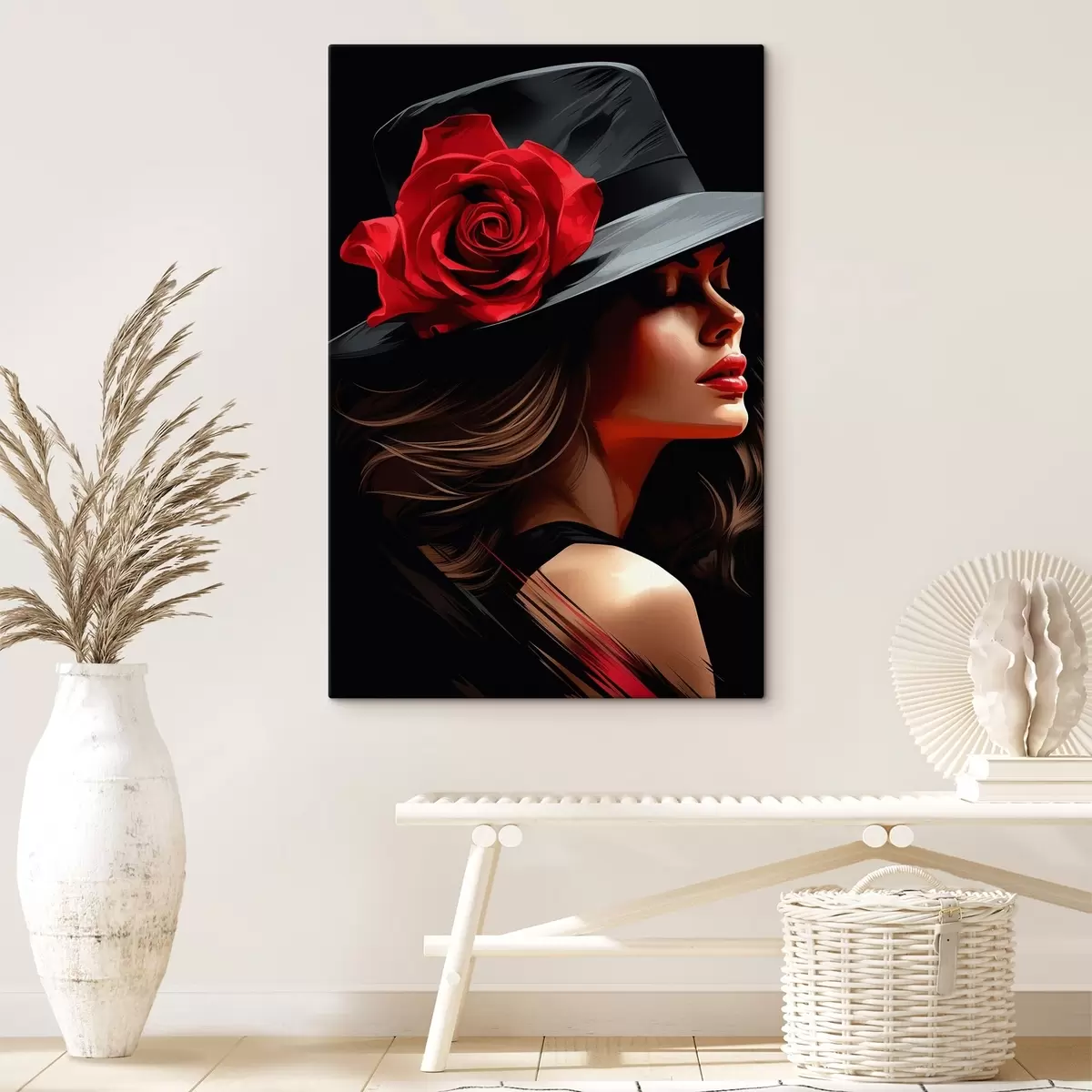Glezna Ilustrācija meitene cepurē ar skaistu šiku rožu s41546