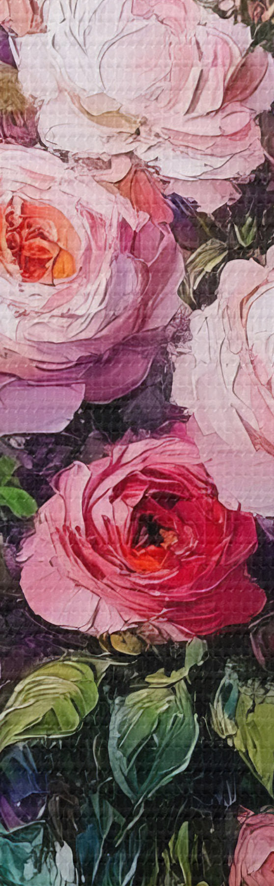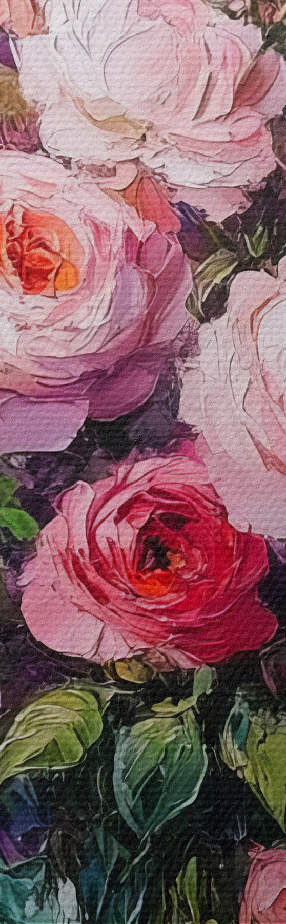 Smalkais diegu pinums uz šī audekla atgādina profesionālu mākslinieku audeklu virsmu.