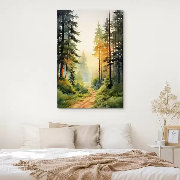 Glezna Skaists akvareļu mežs ar priedēm un maigu saules gaismu Nr s41637