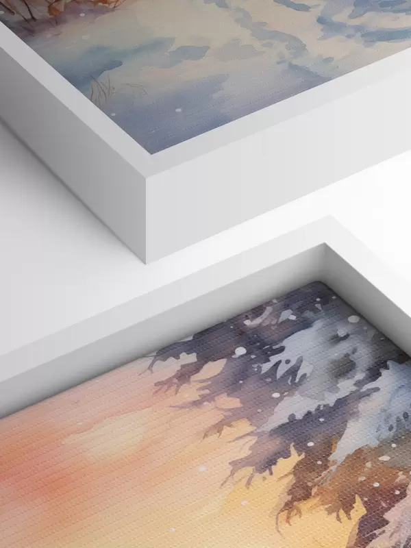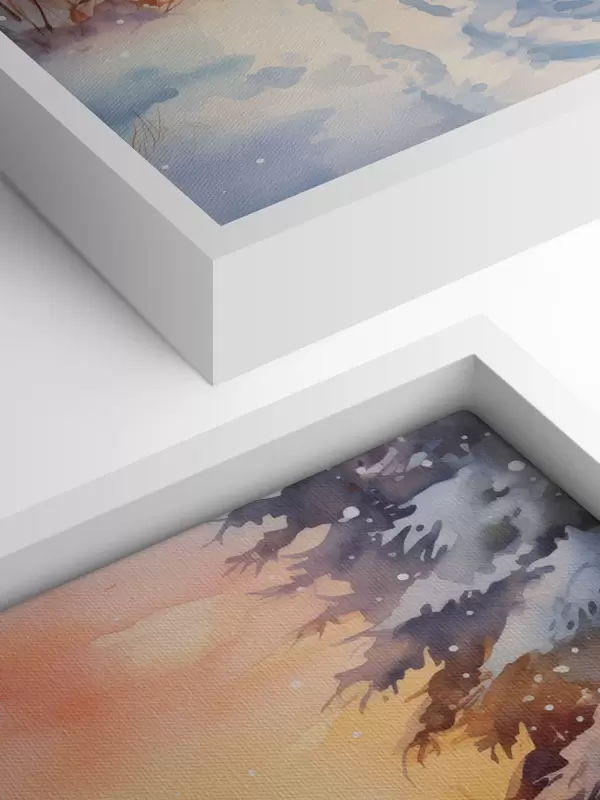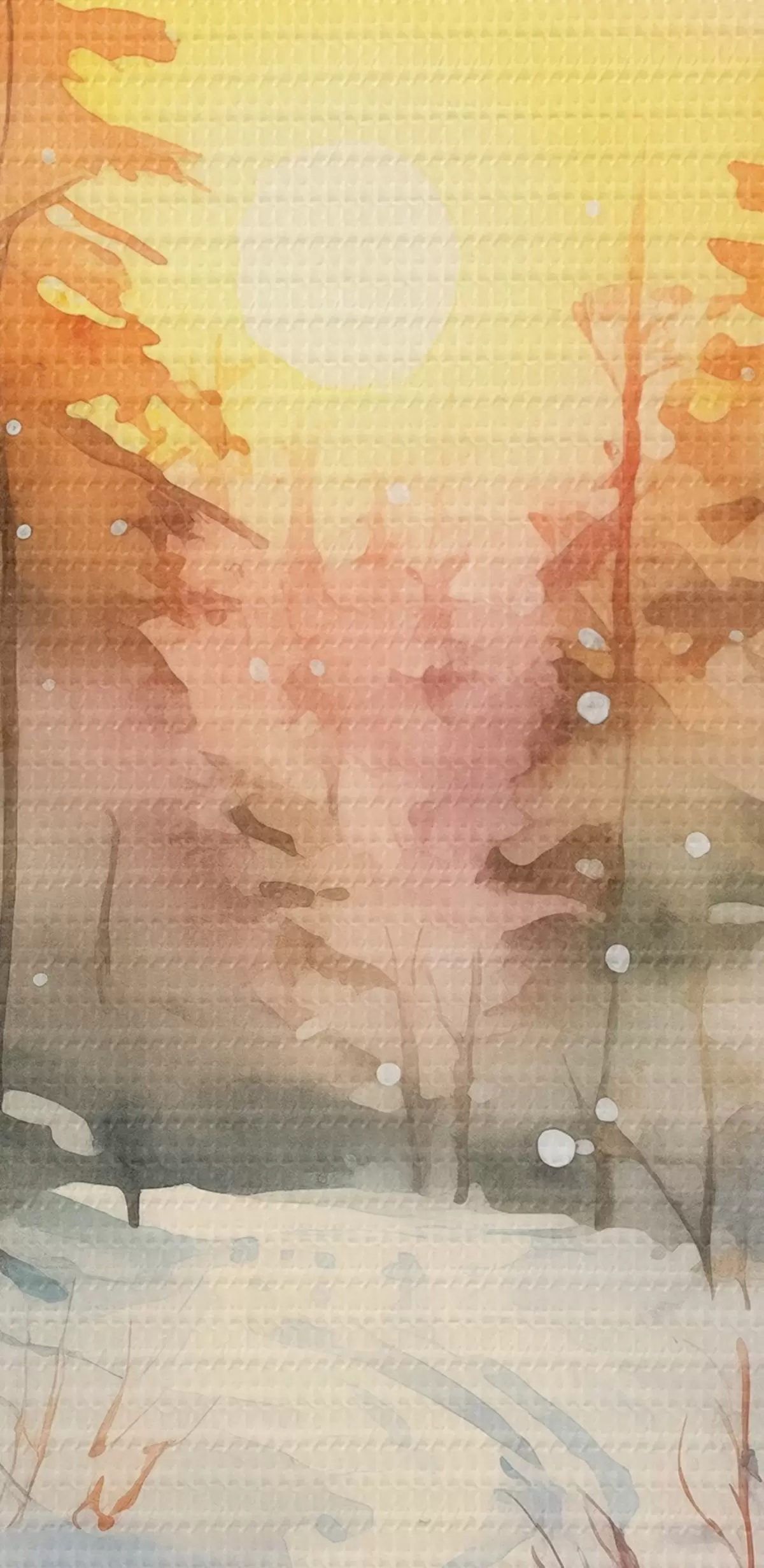 Glezna Akvarelis ziemas mežs, sniegpārslas, skaistas debesis, saulriets s41640